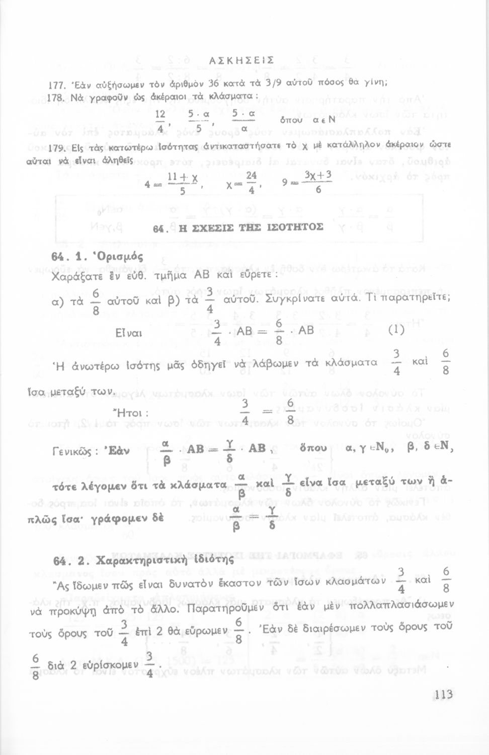 Σχολικό εγχειρίδιο Αριθμητικής για τις Α΄, Β΄, Γ΄ Γυμνασίου που είναι χωρισμένο σε ορισμούς και ασκήσεις και εστιάζει στις ιδιότητες των αριθμητικών πράξεων, τα κλάσματα και την τετραγωνική ρίζα.