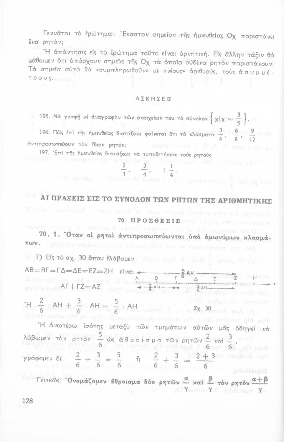 Σχολικό εγχειρίδιο Μαθηματικών Α' Γυμνασίου που περιέχει άλγεβρα με έμφαση στις αριθμητικές πράξεις με ακέραιους, δεκαδικούς και κλάσματα, και γεωμετρία με έμφαση στην επιπεδομετρία. Περιέχει και εισαγωγή στη θεωρία των συνόλων.