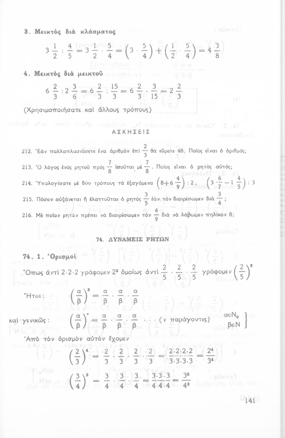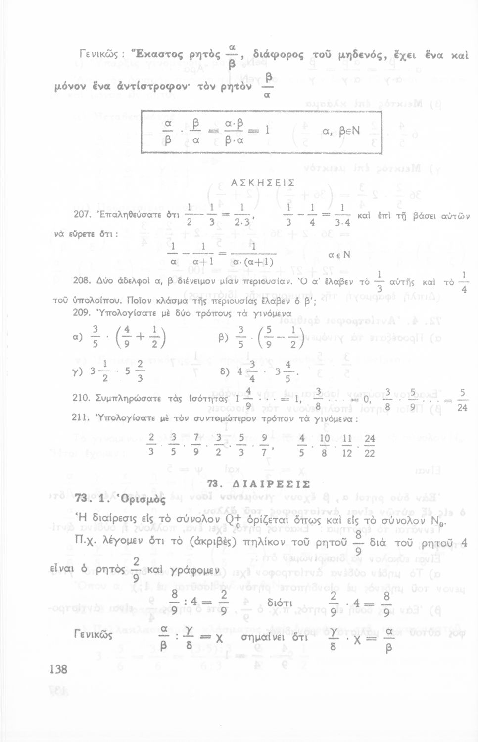 Σχολικό εγχειρίδιο Αριθμητικής για τις Α΄, Β΄, Γ΄ Γυμνασίου που είναι χωρισμένο σε ορισμούς και ασκήσεις και εστιάζει στις ιδιότητες των αριθμητικών πράξεων, τα κλάσματα και την τετραγωνική ρίζα.
