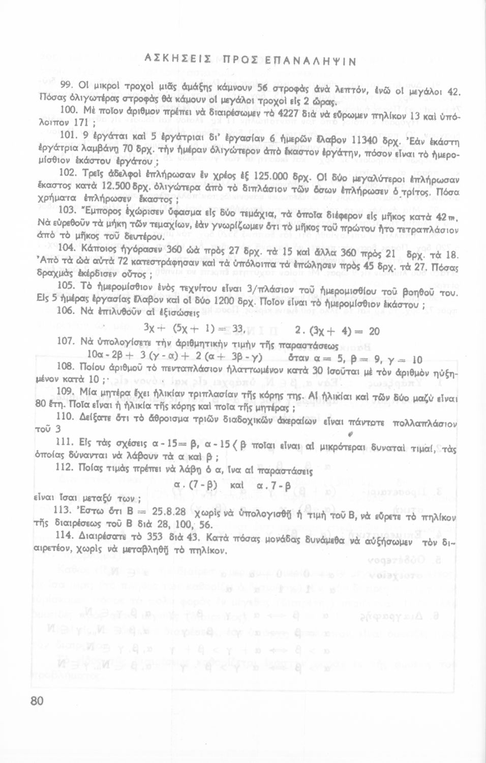 Σχολικό εγχειρίδιο Μαθηματικών Γυμνασίου που είναι χωρισμένο σε θεωρήματα, παραδείγματα και ασκήσεις και περιλαμβάνει στοιχεία Ανώτερης Άλγεβρας και Μαθηματικής Ανάλυσης.