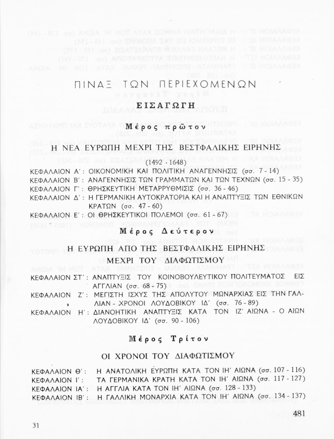 Σχολικό εγχειρίδιο Ιστορίας ΣΤ΄ Γυμνασίου που αποτελεί μια συνοπτική επισκόπηση της ιστορία της Ευρώπης και καλύπτει το διάστημα από την Συνθήκη της Βεστφαλίας ως τον Α΄ Παγκόσμιο Πόλεμο.