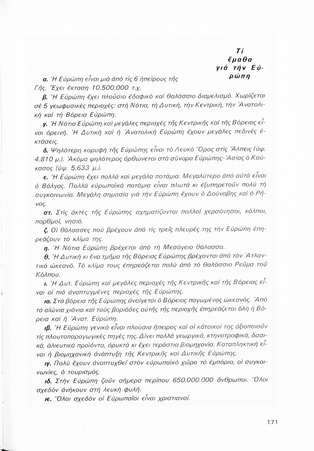 Γεωγραφία Ευρώπης, Ε΄ Δημοτικού