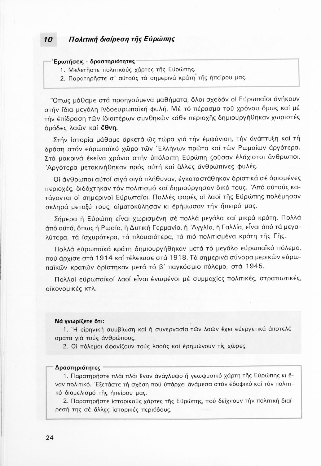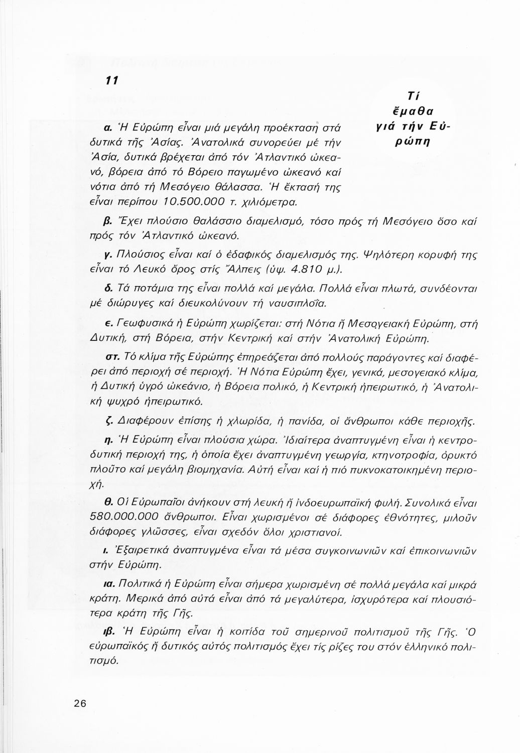 Σχολικό εγχειρίδιο Γεωγραφίας Ε΄ Δημοτικού και περιλαμβάνει εισαγωγή στη φυσική, πολιτική, πολιτισμική και οικονομική γεωγραφία της Ευρώπης και εξετάζει τα κράτη της γεωφυσική, οικονομική και πολιτική άποψη