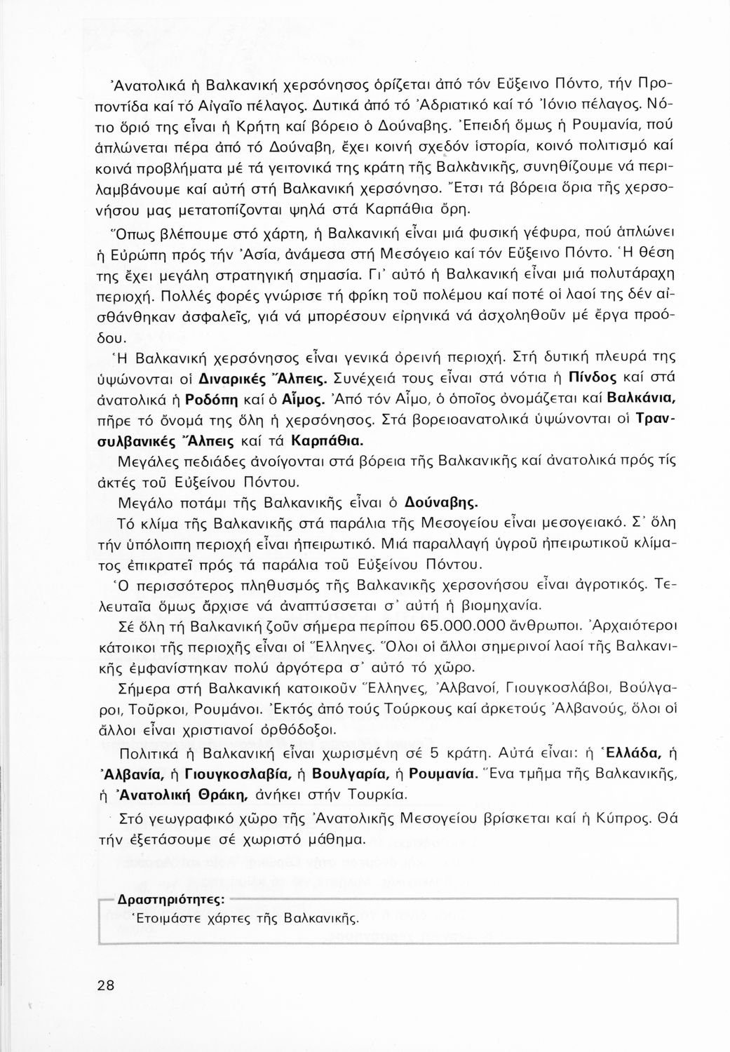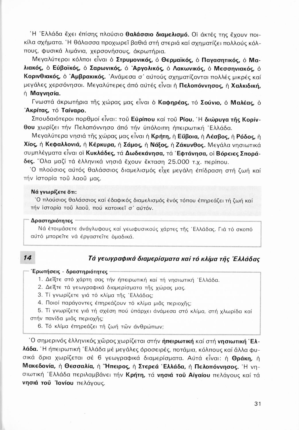 Βαθμίδα εκπαίδευσης: Πρωτοβάθμια Τάξη: Ε' Δημοτικού Μάθημα: Γεωγραφία Γλώσσα: Δημοτική Παρουσίαση περιεχομένου: Σχολικό εγχειρίδιο Γεωγραφίας Ε΄ Δημοτικού και περιλαμβάνει εισαγωγή στη φυσική, πολιτική, πολιτισμική και οικονομική γεωγραφία της Ευρώπης και εξετάζει τα κράτη της γεωφυσική, οικονομική και πολιτική άποψη |