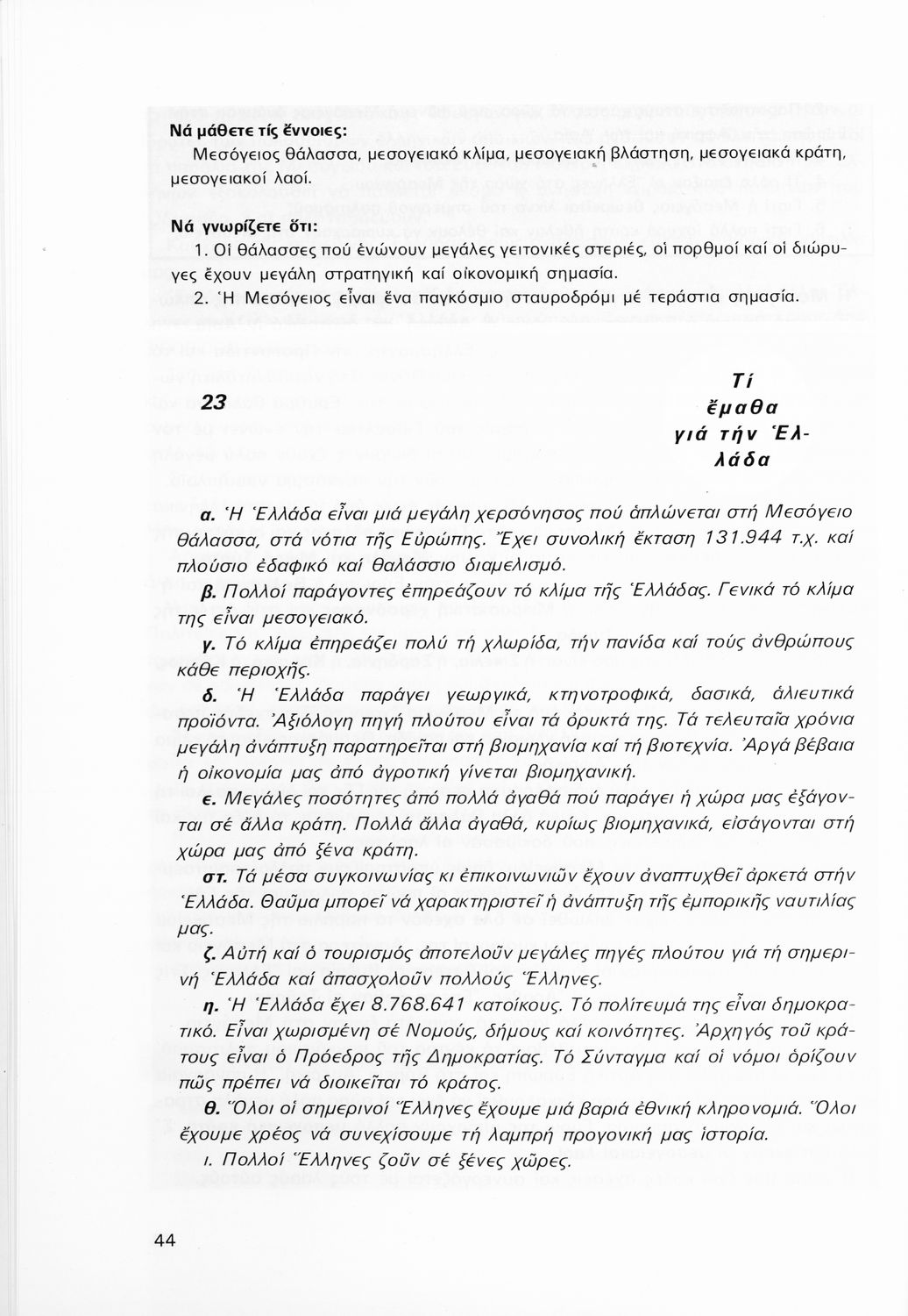 Βαθμίδα εκπαίδευσης: Πρωτοβάθμια Τάξη: Ε' Δημοτικού Μάθημα: Γεωγραφία Γλώσσα: Δημοτική Παρουσίαση περιεχομένου: Σχολικό εγχειρίδιο Γεωγραφίας Ε΄ Δημοτικού και περιλαμβάνει εισαγωγή στη φυσική, πολιτική, πολιτισμική και οικονομική γεωγραφία της Ευρώπης και εξετάζει τα κράτη της γεωφυσική, οικονομική και πολιτική άποψη |