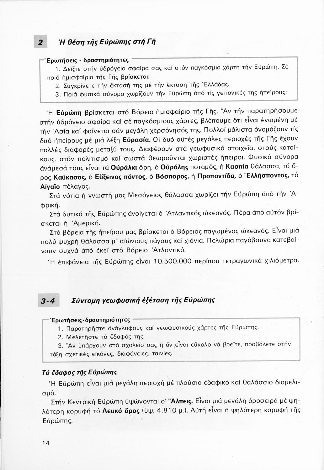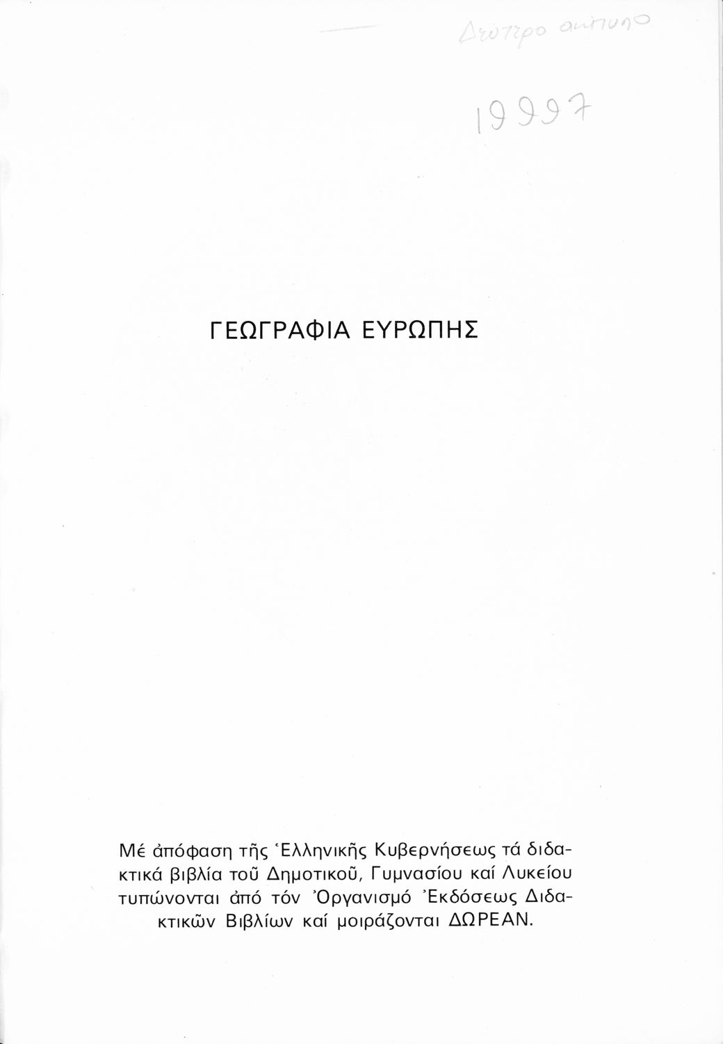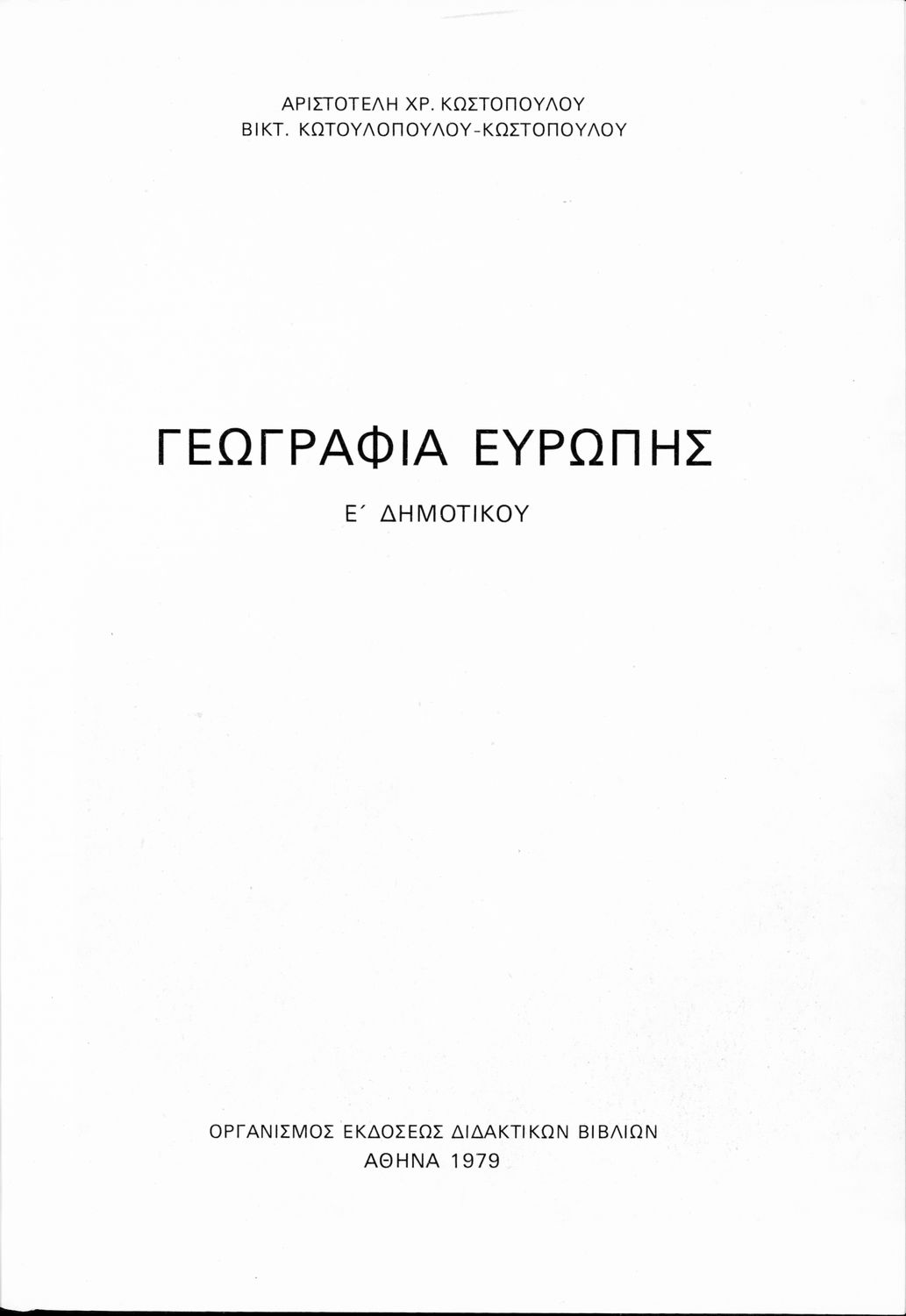 Σχολικό εγχειρίδιο Γεωγραφίας Ε΄ Δημοτικού και περιλαμβάνει εισαγωγή στη φυσική, πολιτική, πολιτισμική και οικονομική γεωγραφία της Ευρώπης και εξετάζει τα κράτη της γεωφυσική, οικονομική και πολιτική άποψη