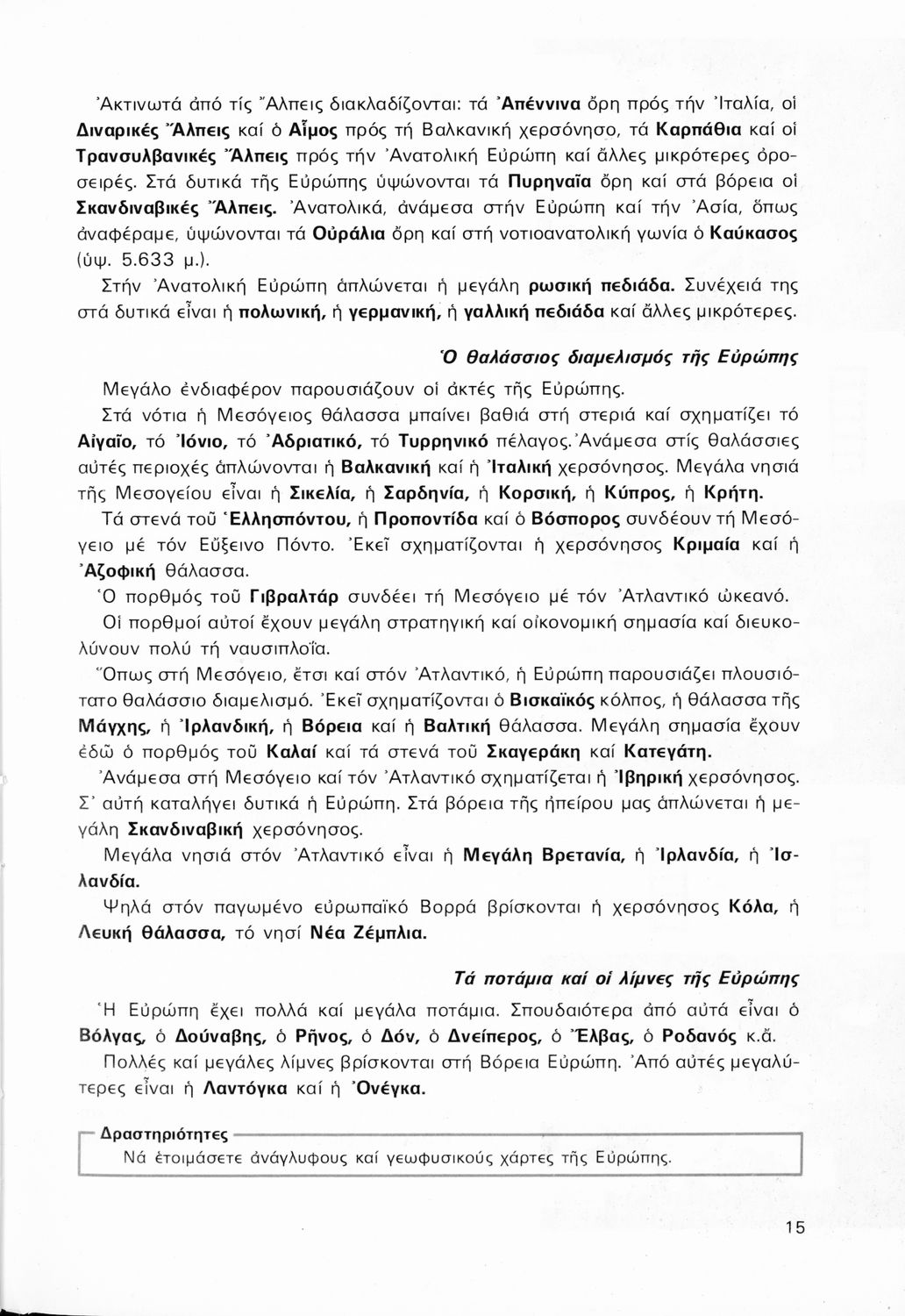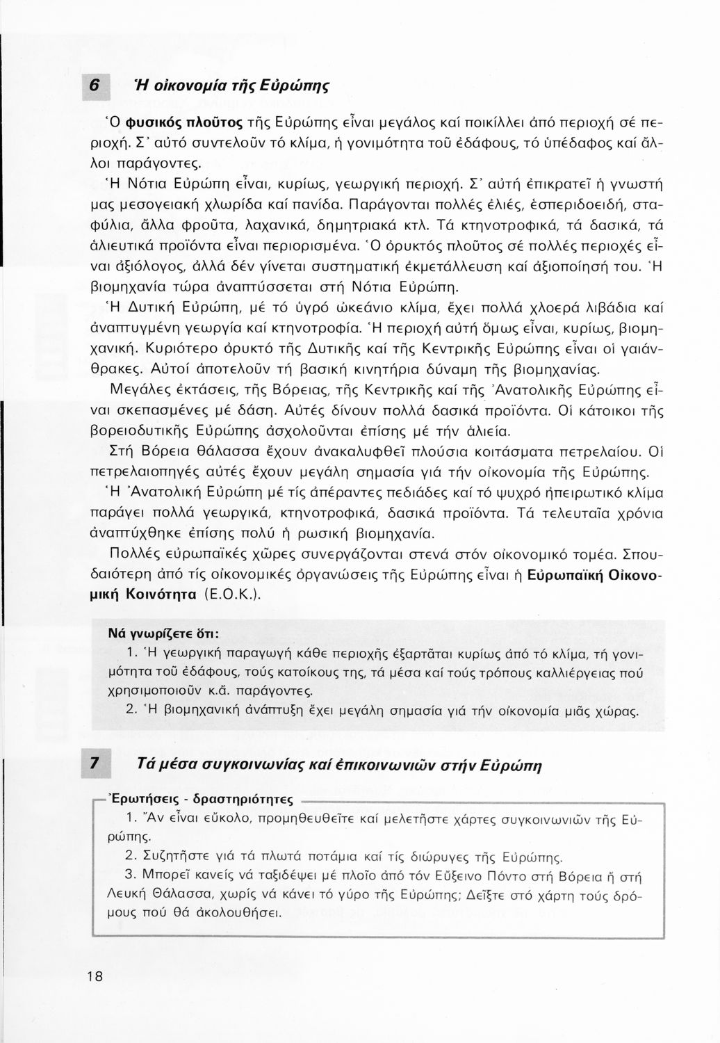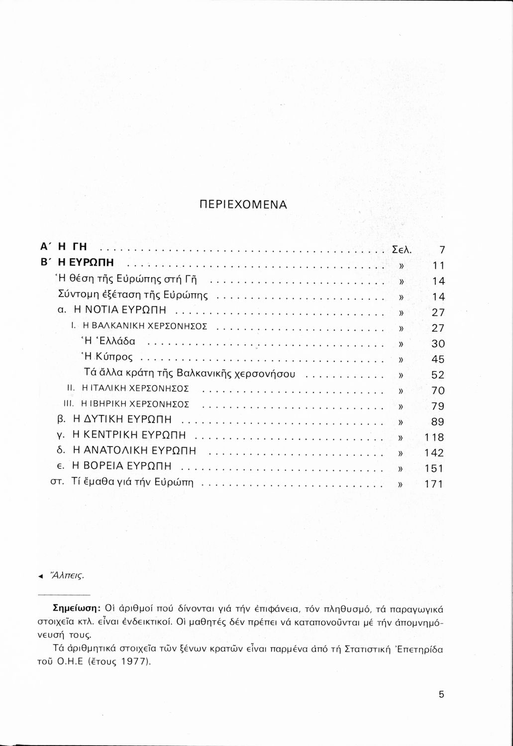 Σχολικό εγχειρίδιο Γεωγραφίας Ε΄ Δημοτικού και περιλαμβάνει εισαγωγή στη φυσική, πολιτική, πολιτισμική και οικονομική γεωγραφία της Ευρώπης και εξετάζει τα κράτη της γεωφυσική, οικονομική και πολιτική άποψη