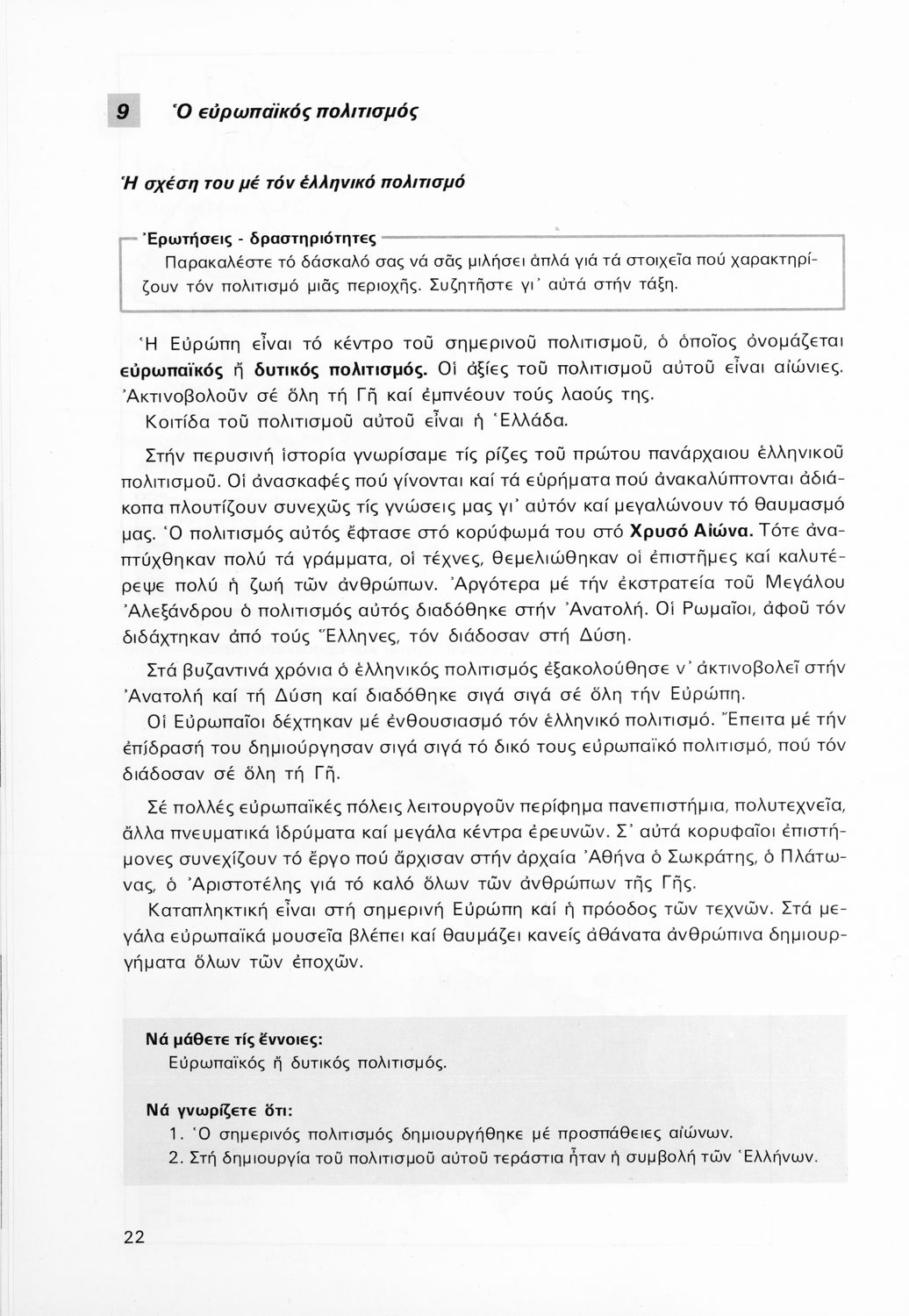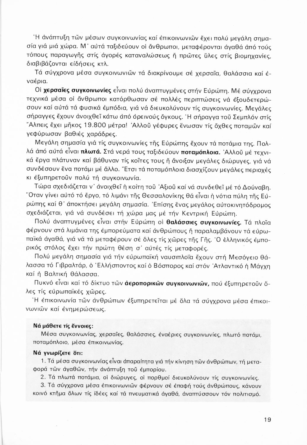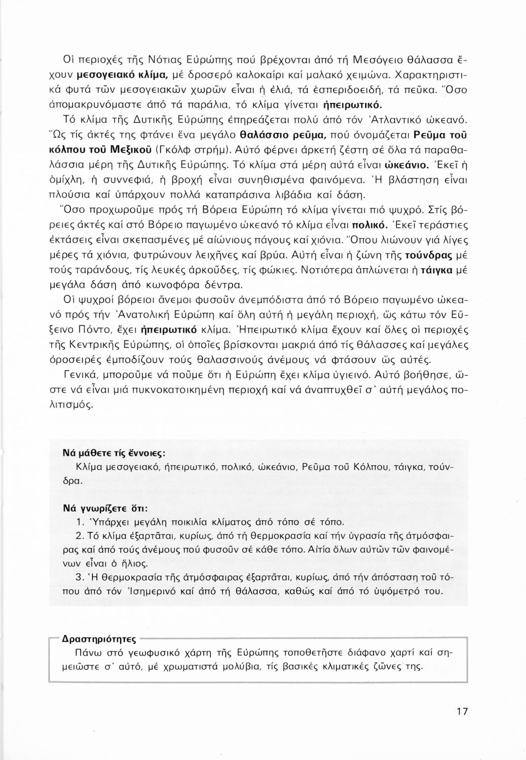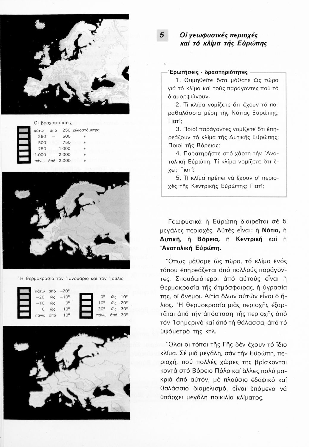 Βαθμίδα εκπαίδευσης: Πρωτοβάθμια Τάξη: Ε' Δημοτικού Μάθημα: Γεωγραφία Γλώσσα: Δημοτική Παρουσίαση περιεχομένου: Σχολικό εγχειρίδιο Γεωγραφίας Ε΄ Δημοτικού και περιλαμβάνει εισαγωγή στη φυσική, πολιτική, πολιτισμική και οικονομική γεωγραφία της Ευρώπης και εξετάζει τα κράτη της γεωφυσική, οικονομική και πολιτική άποψη |