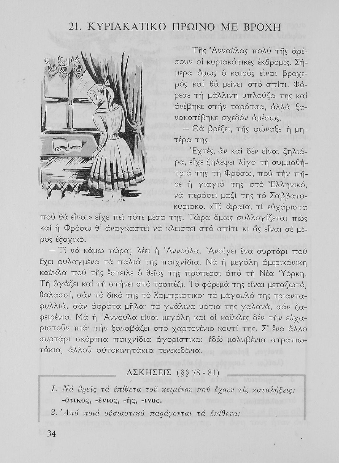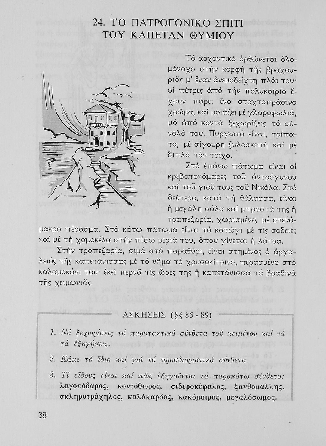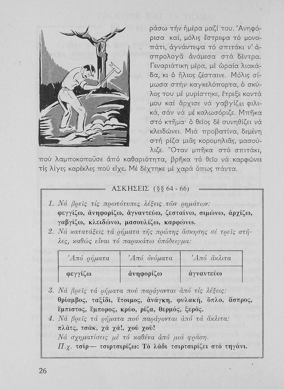 Σχολικό εγχειρίδιο για τη Γραμματική με κείμενα και ασκήσεις πάνω στα μέρη του λόγου και τις κλίσεις τους για εξάσκηση και εμπέδωση των μαθητών.
