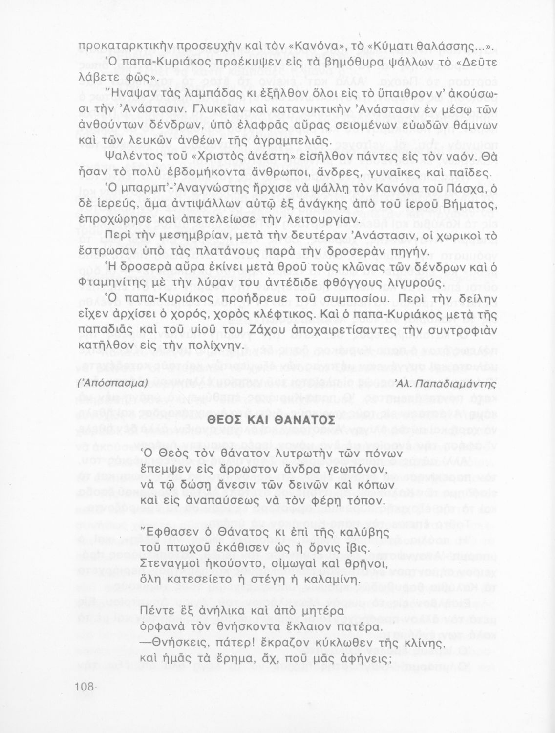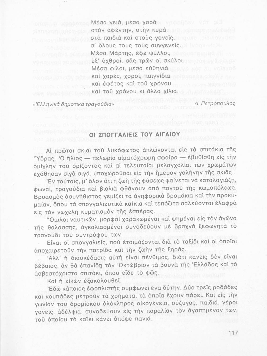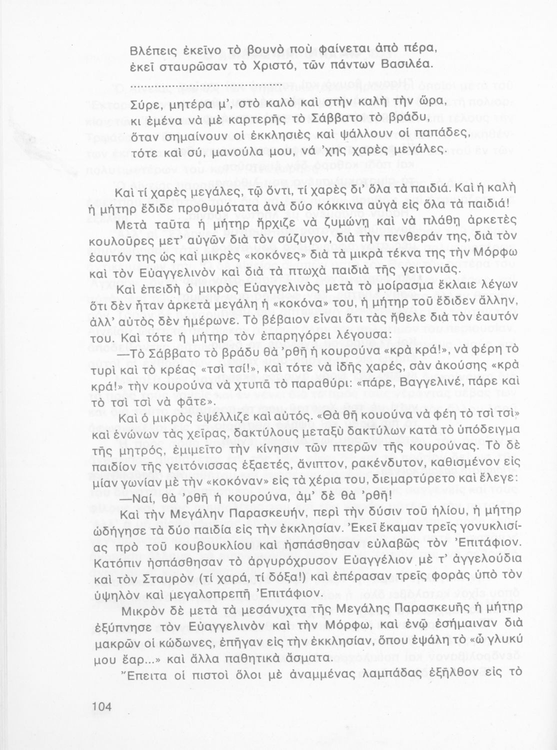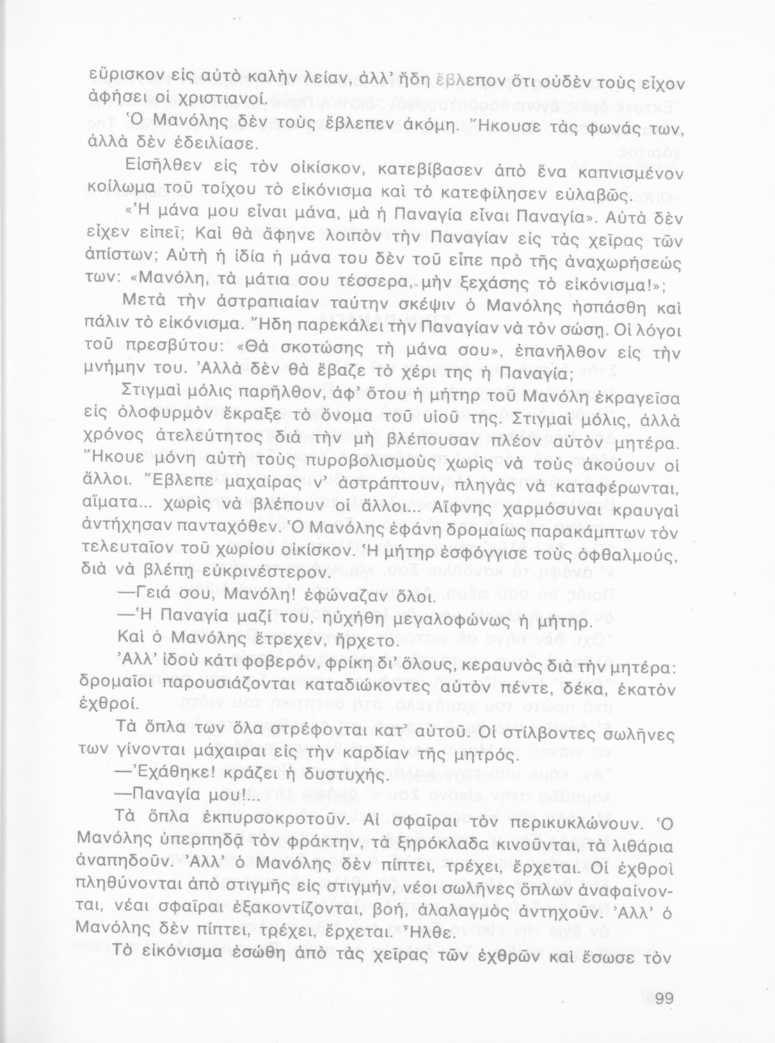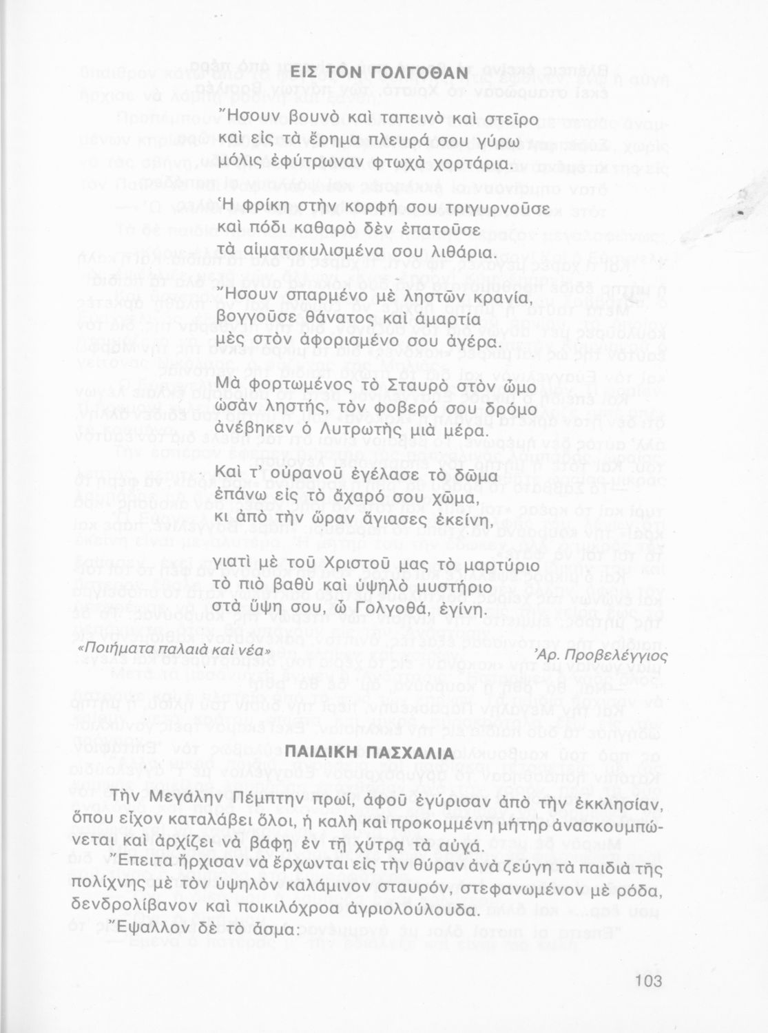 Σχολικό εγχειρίδιο Νέων Ελληνικών Γ΄ Γυμνασίου και Α' Αστικού Σχολείου που περιέχει πεζά και ποιήματα Ελλήνων συγγραφέων εμπνευσμένα από τη θρησκευτική και κοινωνική ζωή, την ελληνική μυθολογία, την αρχαία και