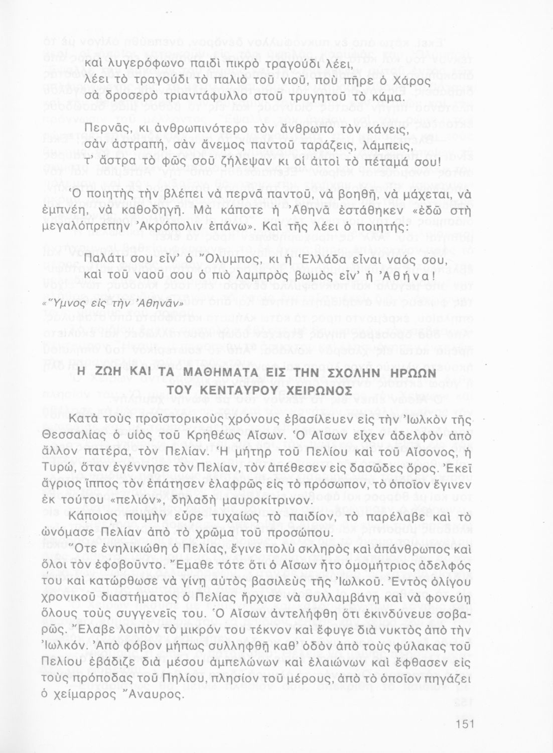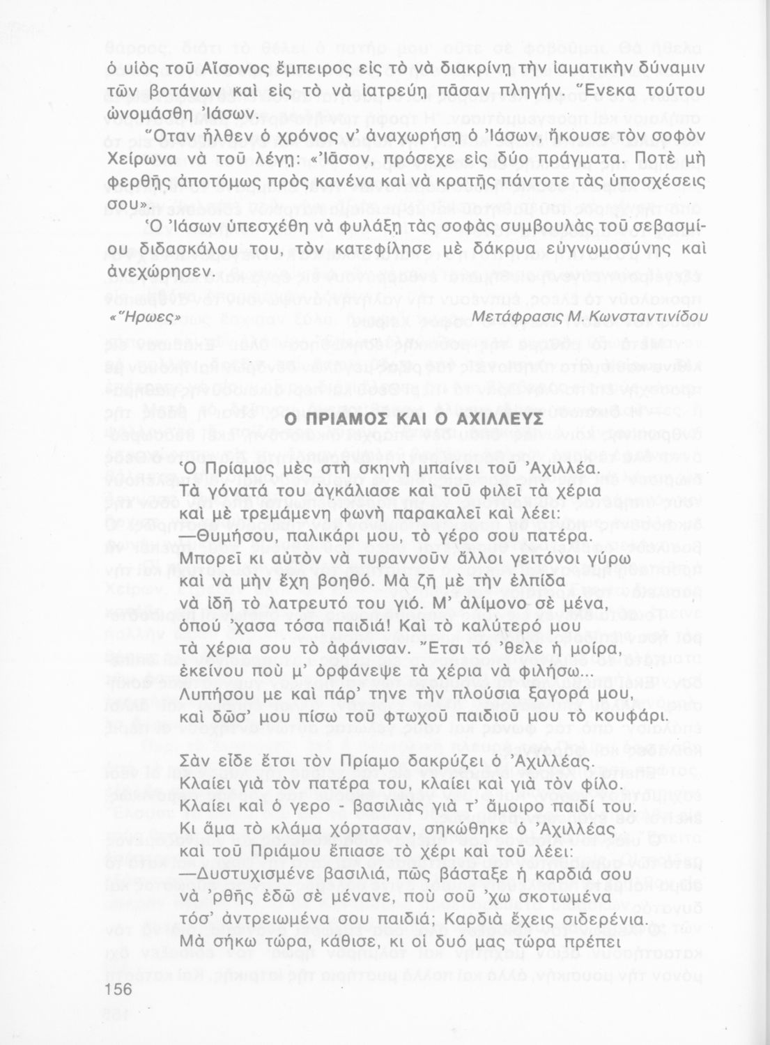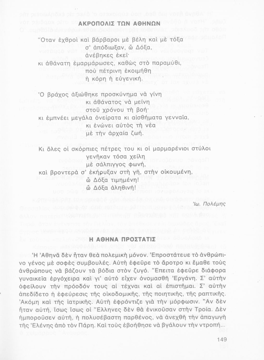 Σχολικό εγχειρίδιο Νέων Ελληνικών Γ΄ Γυμνασίου και Α' Αστικού Σχολείου που περιέχει πεζά και ποιήματα Ελλήνων συγγραφέων εμπνευσμένα από τη θρησκευτική και κοινωνική ζωή, την ελληνική μυθολογία, την αρχαία και