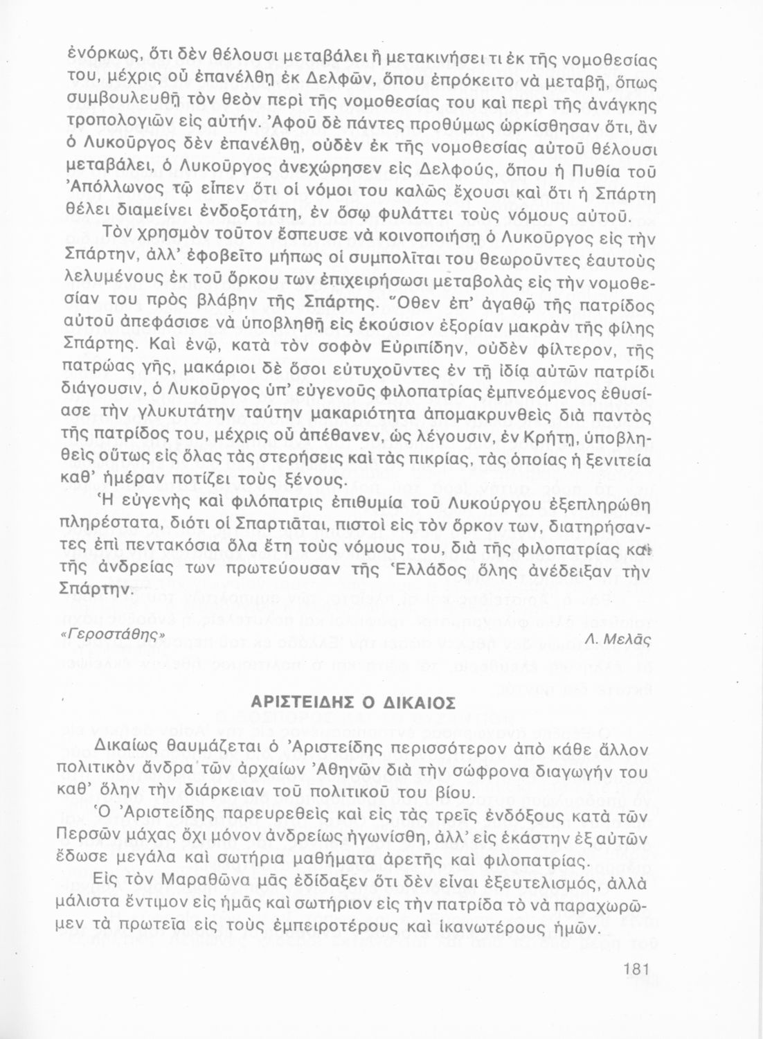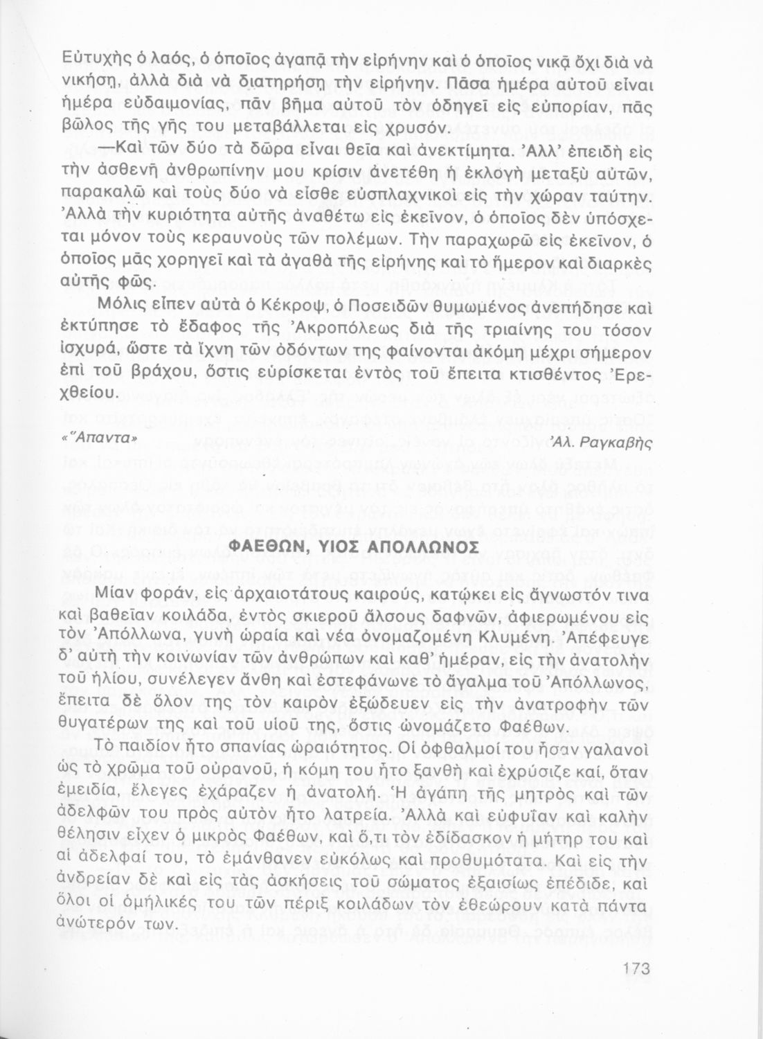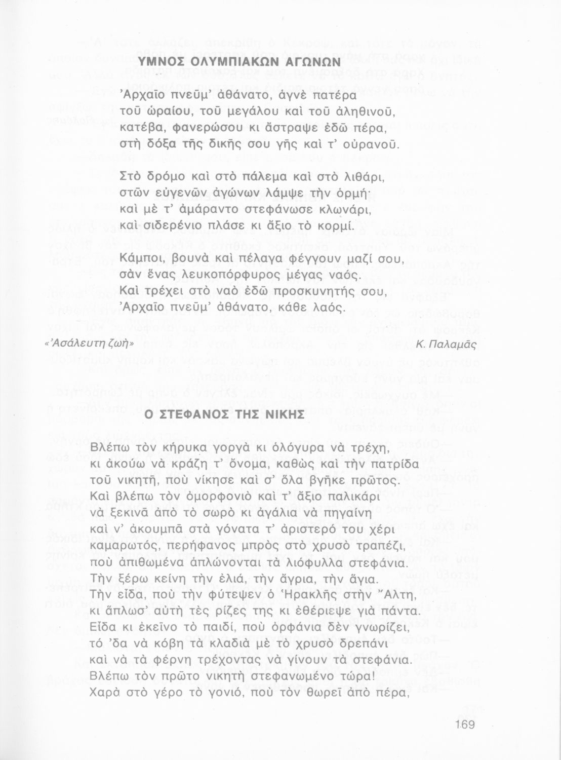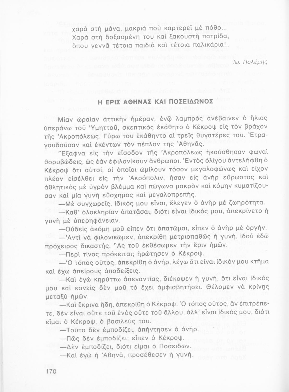 Σχολικό εγχειρίδιο Νέων Ελληνικών Γ΄ Γυμνασίου και Α' Αστικού Σχολείου που περιέχει πεζά και ποιήματα Ελλήνων συγγραφέων εμπνευσμένα από τη θρησκευτική και κοινωνική ζωή, την ελληνική μυθολογία, την αρχαία και
