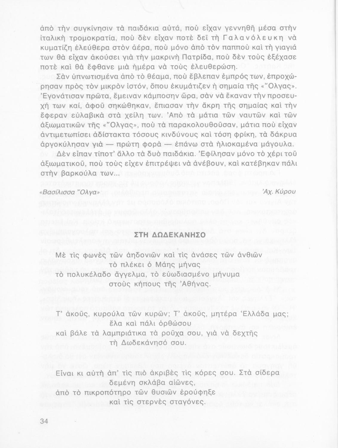 Σχολικό εγχειρίδιο Νέων Ελληνικών Γ΄ Γυμνασίου και Α' Αστικού Σχολείου που περιέχει πεζά και ποιήματα Ελλήνων συγγραφέων εμπνευσμένα από τη θρησκευτική και κοινωνική ζωή, την ελληνική μυθολογία, την αρχαία και
