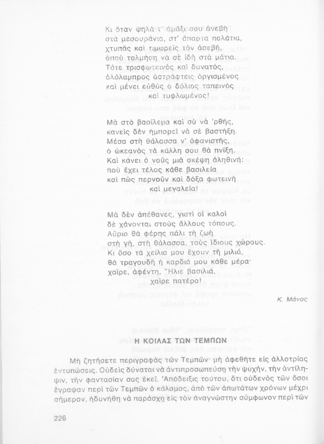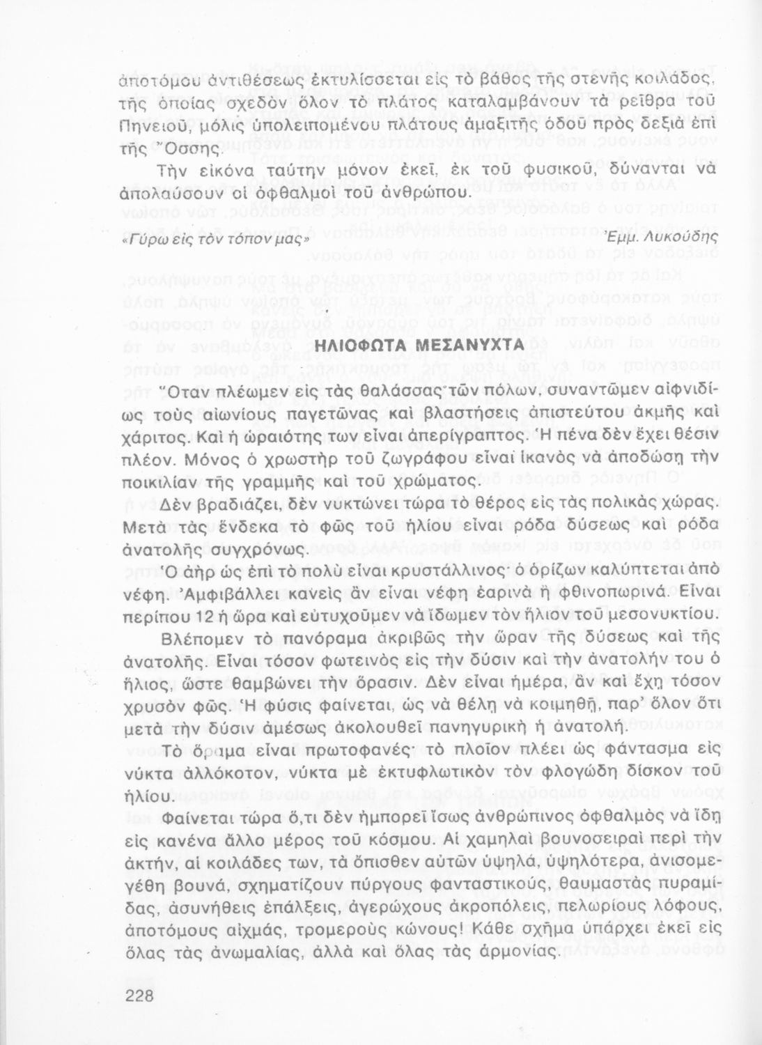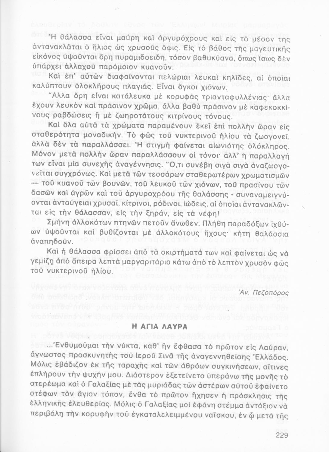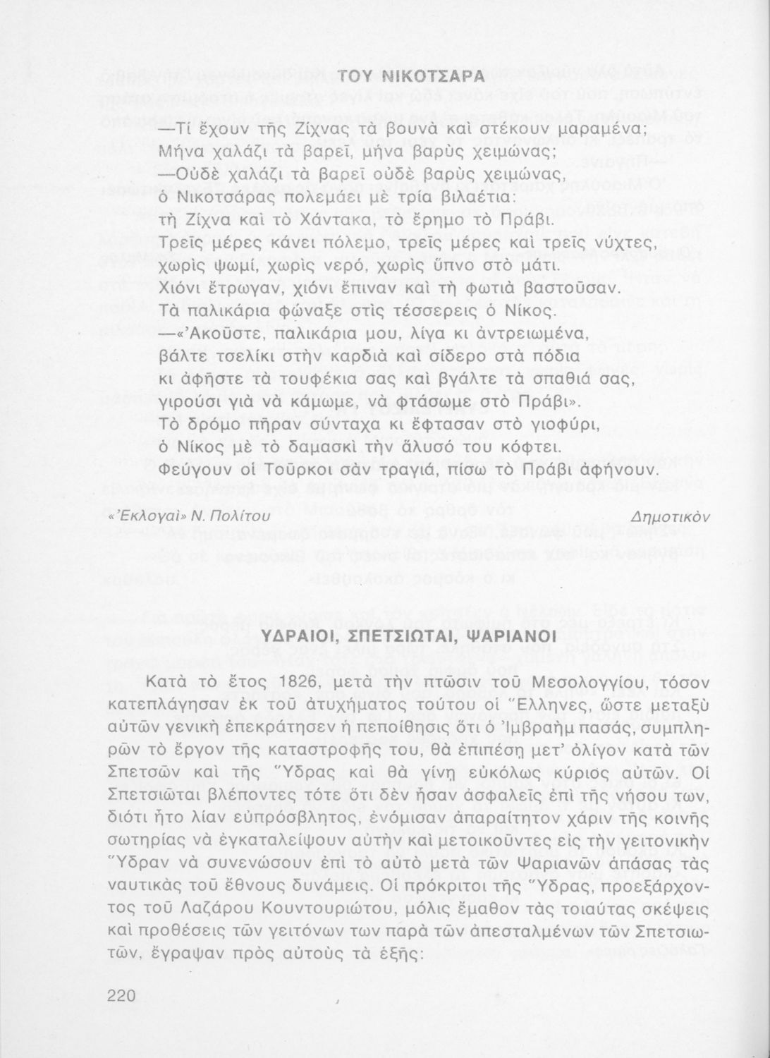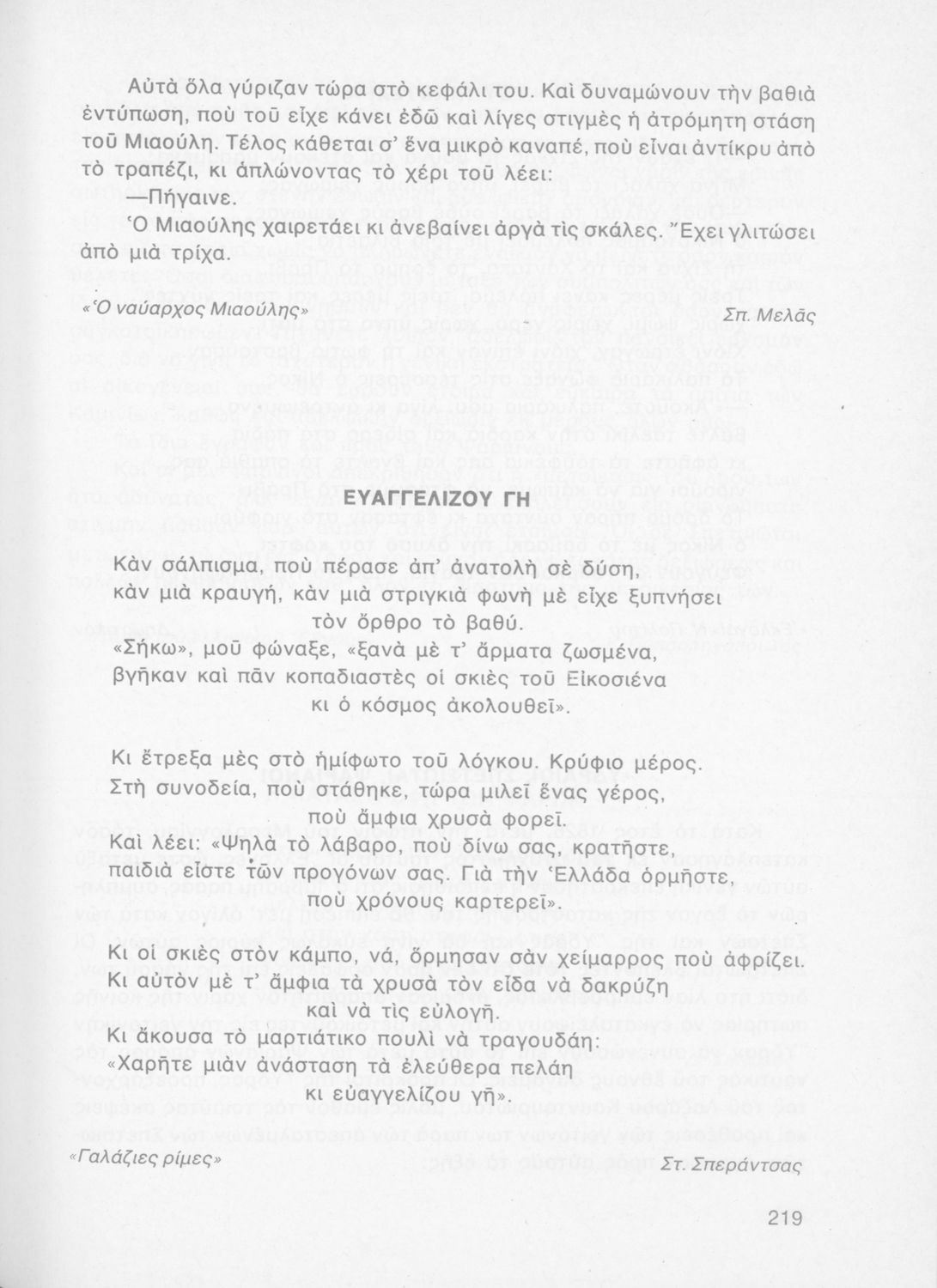 Σχολικό εγχειρίδιο Νέων Ελληνικών Γ΄ Γυμνασίου και Α' Αστικού Σχολείου που περιέχει πεζά και ποιήματα Ελλήνων συγγραφέων εμπνευσμένα από τη θρησκευτική και κοινωνική ζωή, την ελληνική μυθολογία, την αρχαία και