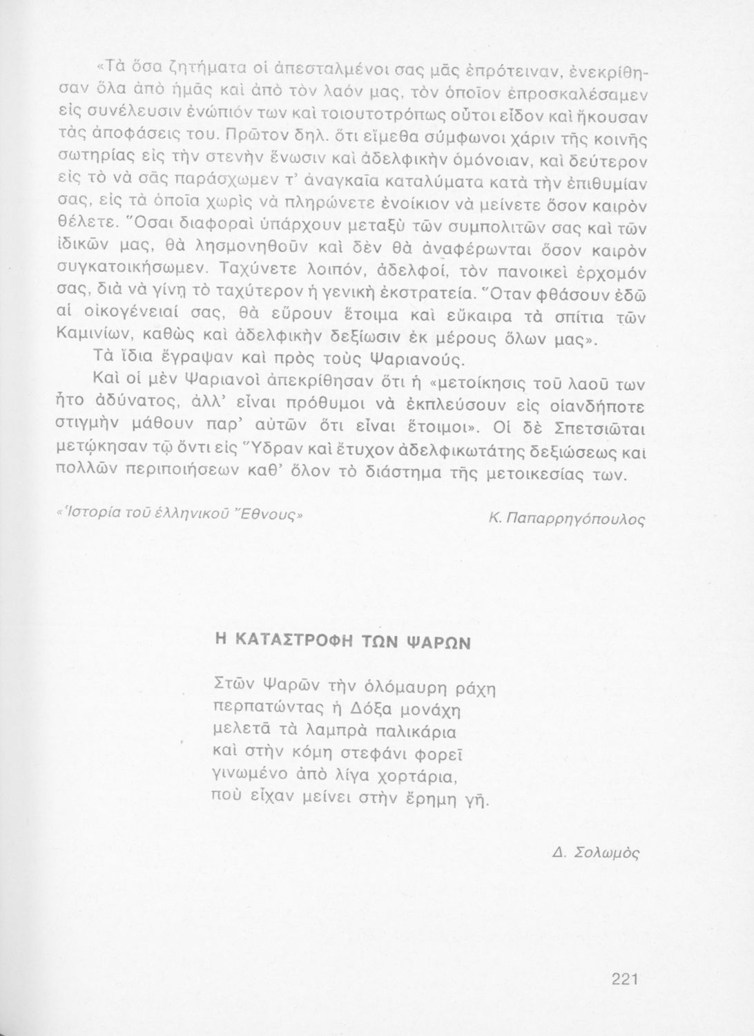 Σχετιζόμενοι όροι:  Παπαντωνίου, Πολέμης, Παλαμάς, Βηλαράς