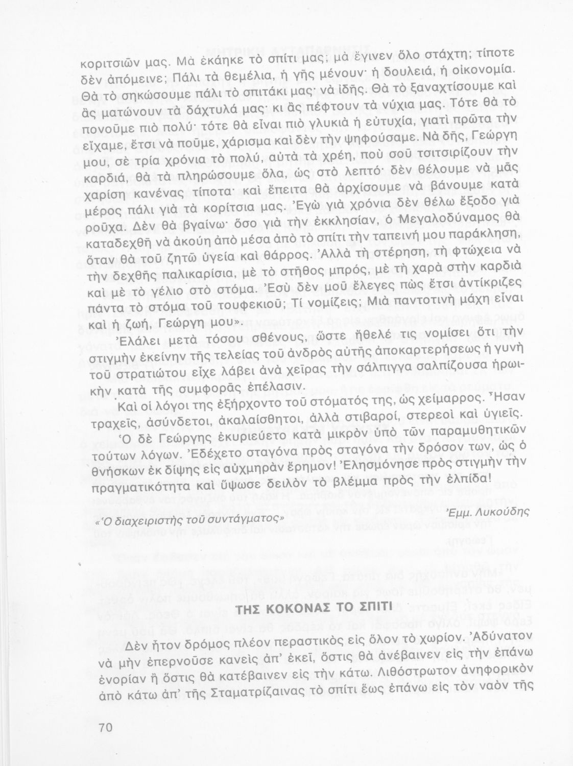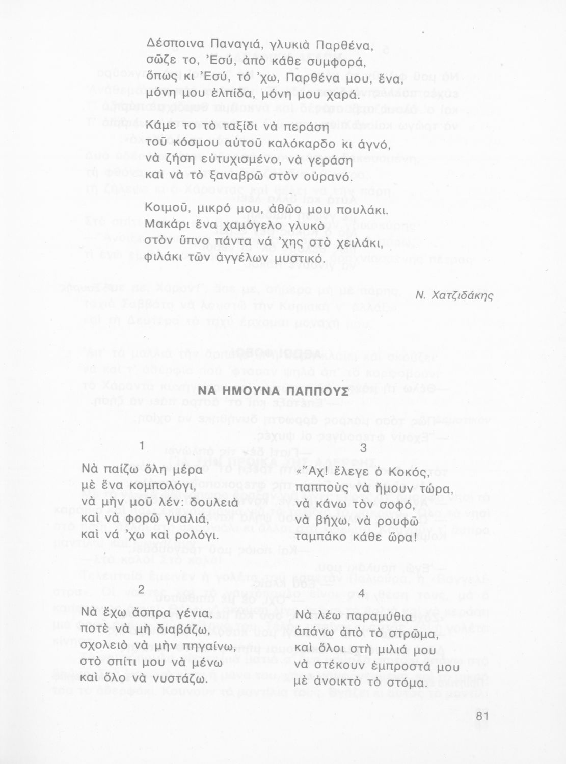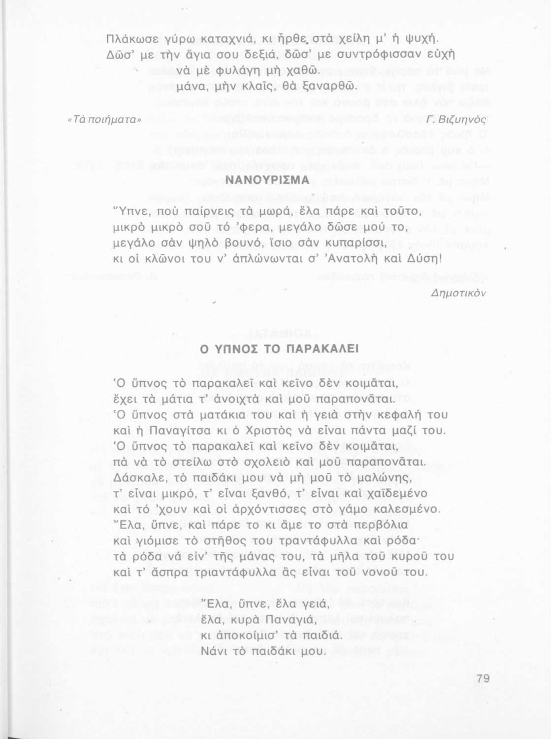 Σχολικό εγχειρίδιο Νέων Ελληνικών Γ΄ Γυμνασίου και Α' Αστικού Σχολείου που περιέχει πεζά και ποιήματα Ελλήνων συγγραφέων εμπνευσμένα από τη θρησκευτική και κοινωνική ζωή, την ελληνική μυθολογία, την αρχαία και
