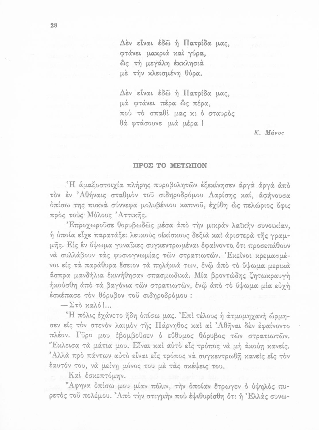 Σχολικό εγχειρίδιο Νέων Ελληνικών Γ΄ Γυμνασίου και Α' Αστικού Σχολείου που περιέχει πεζά και ποιήματα Ελλήνων συγγραφέων εμπνευσμένα από τη θρησκευτική και κοινωνική ζωή, την ελληνική μυθολογία, την αρχαία και