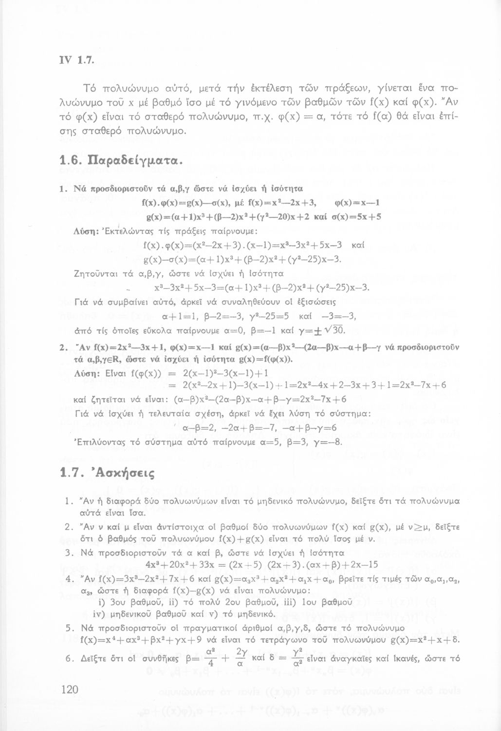 Σχολικό εγχειρίδιο Άλγεβρας Β΄ Λυκείου χωρισμένο σε θεωρία, παρατηρήσεις και ασκήσεις που περιλαμβάνει και στοιχεία από το Διανυσματικό Λογισμό και την Αναλυτική Γεωμετρία που έχουν συγγραφεί από τον Ιωάννη ...