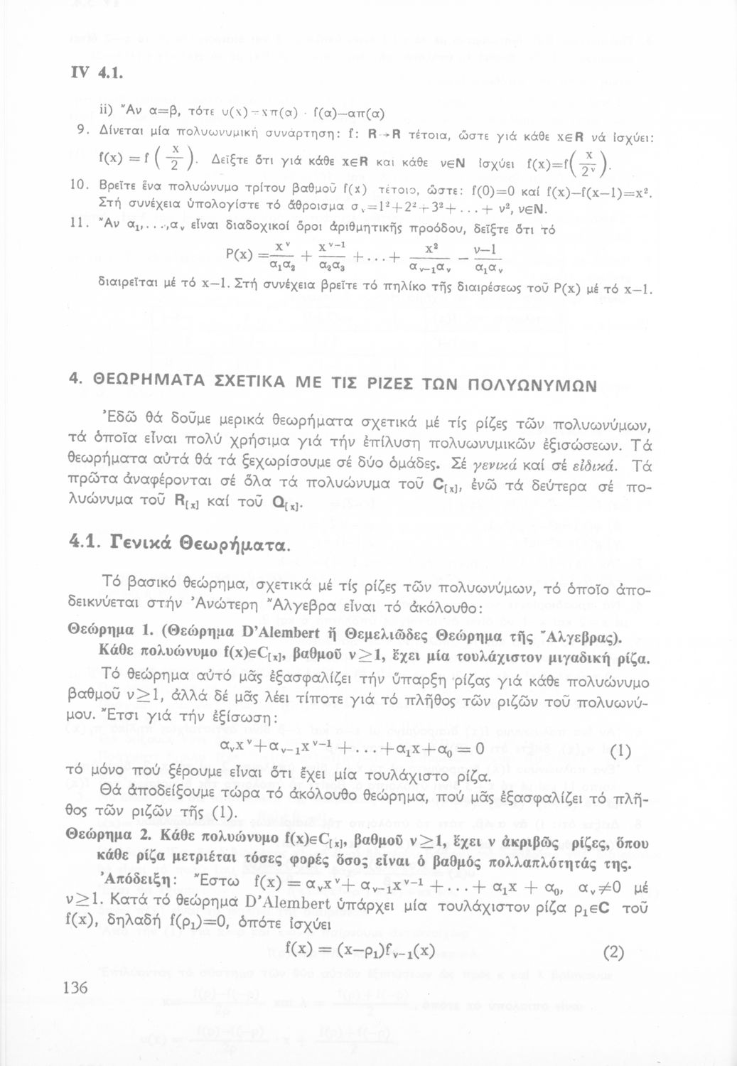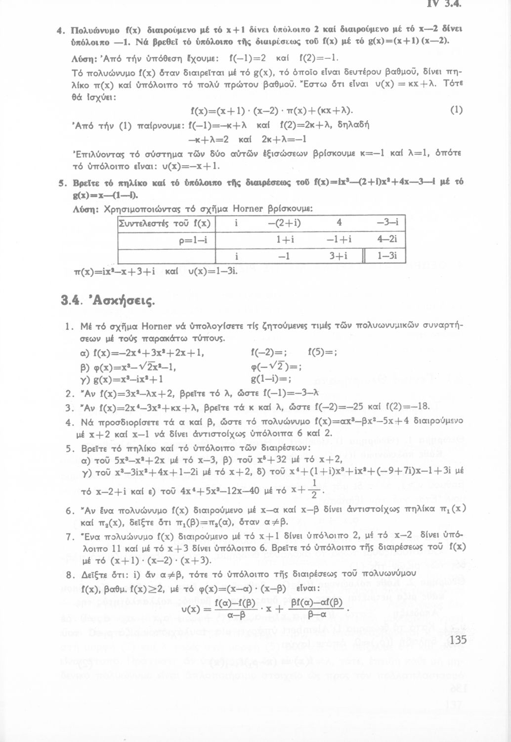 Σχολικό εγχειρίδιο Μαθηματικών Γ΄ Λυκείου που είναι χωρισμένο σε θεωρήματα, παραδείγματα και ασκήσεις και περιλαμβάνει στοιχεία Ανώτερης Άλγεβρας και Μαθηματικής Ανάλυσης.