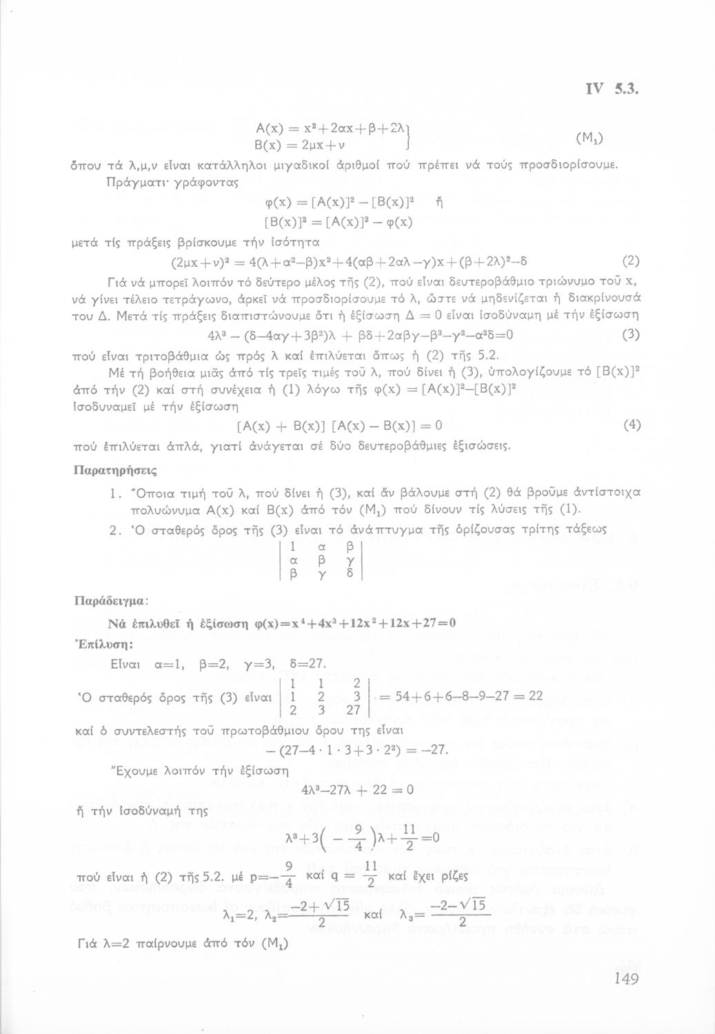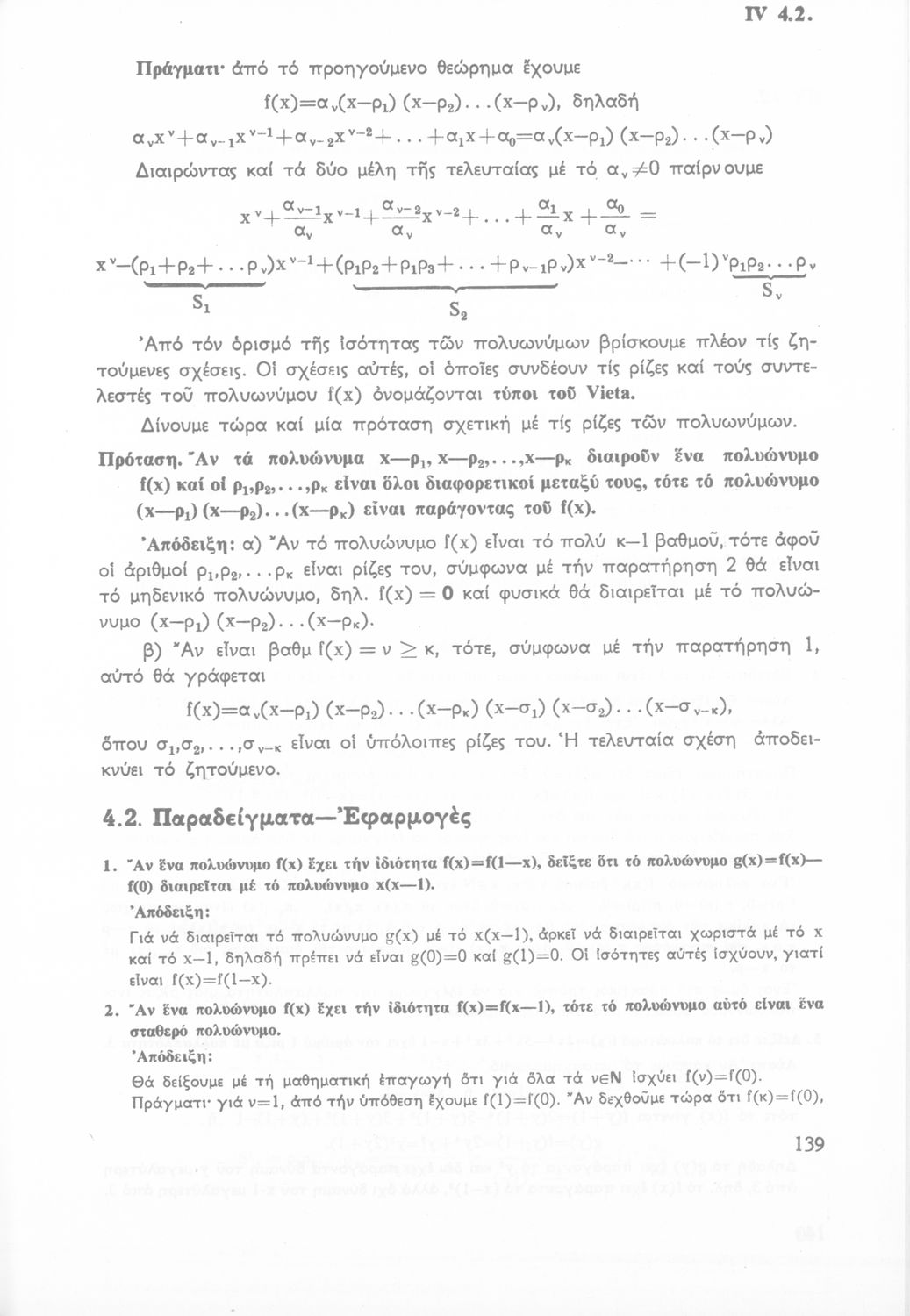 Σχολικό εγχειρίδιο Μαθηματικών Β΄ Λυκείου χωρισμένο σε θεωρία, παρατηρήσεις, παραδείγματα και ασκήσεις.