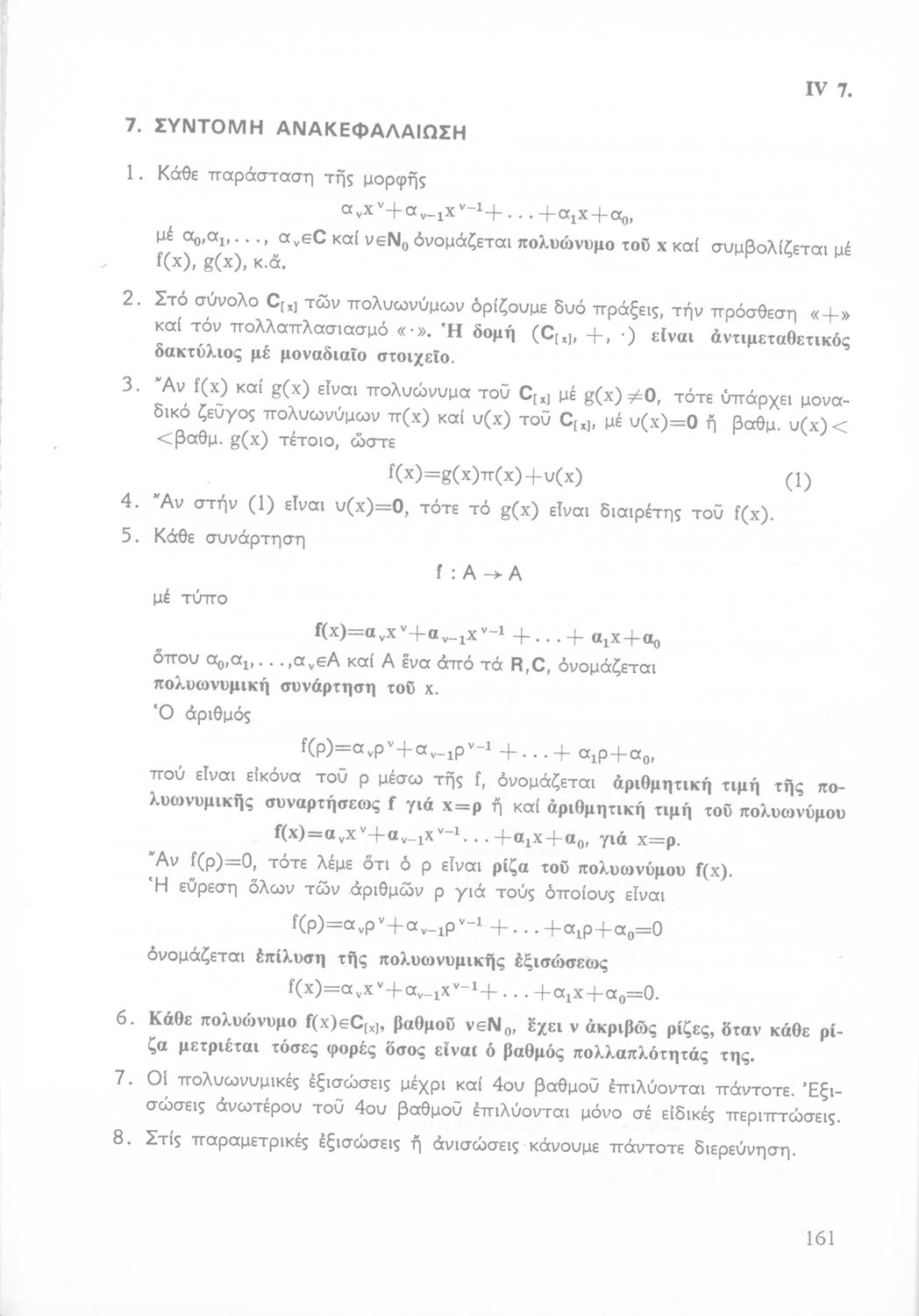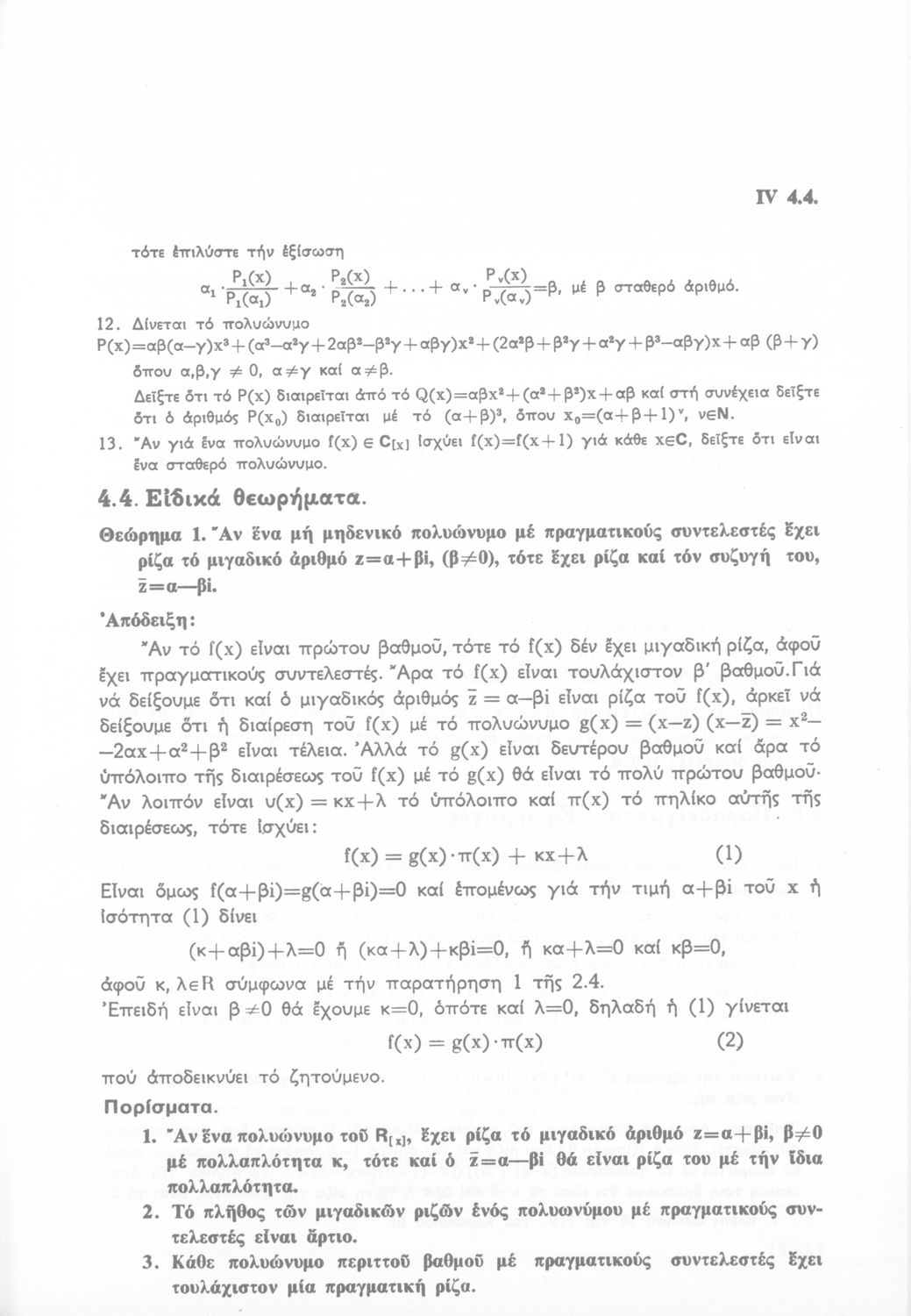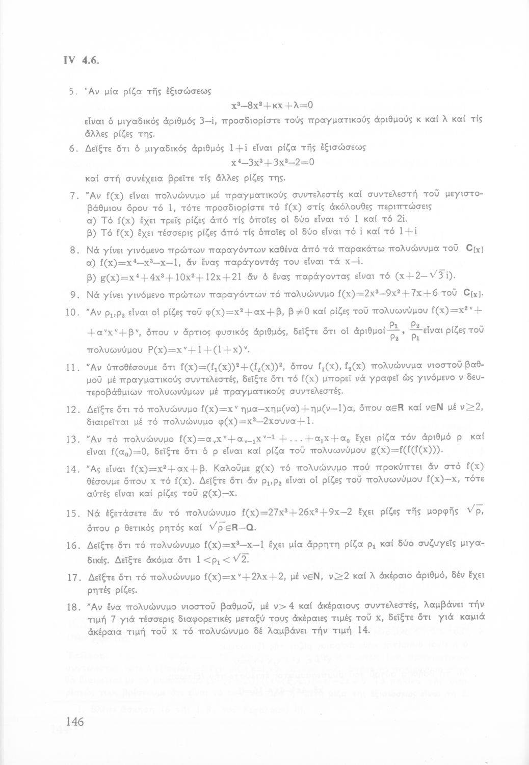 Σχολικό εγχειρίδιο Μαθηματικών Γ΄ Λυκείου που είναι χωρισμένο σε θεωρήματα, παραδείγματα και ασκήσεις και περιλαμβάνει στοιχεία Ανώτερης Άλγεβρας και Μαθηματικής Ανάλυσης.