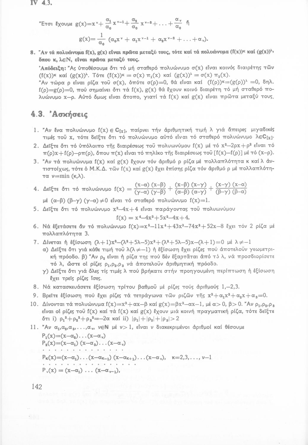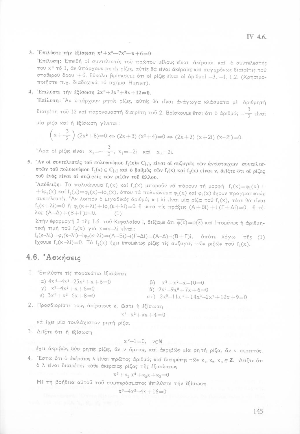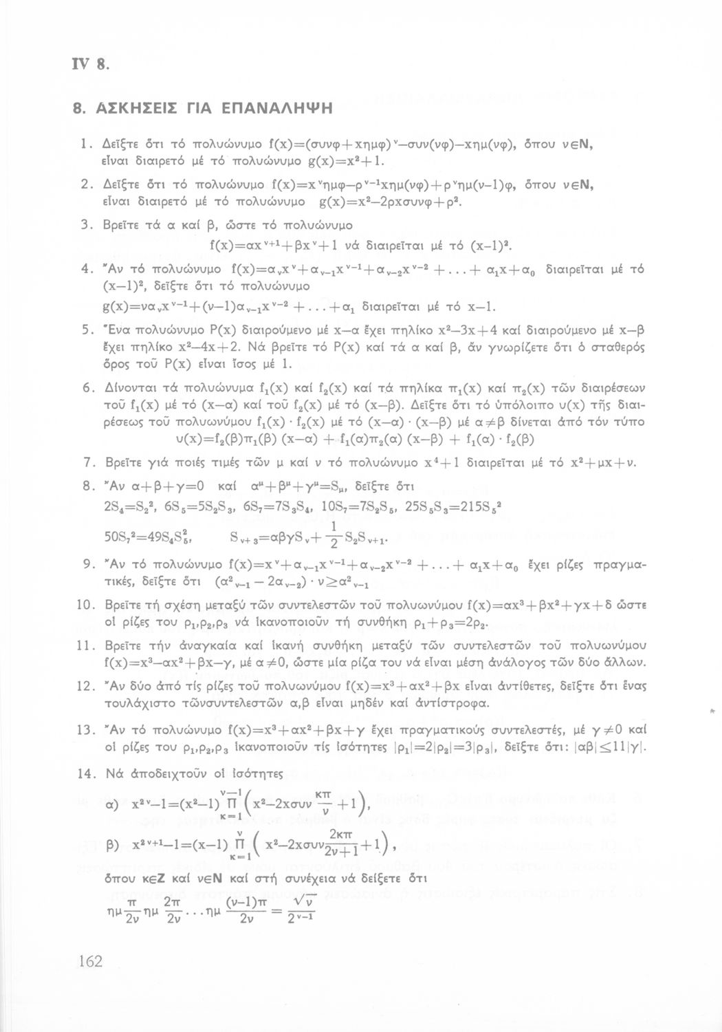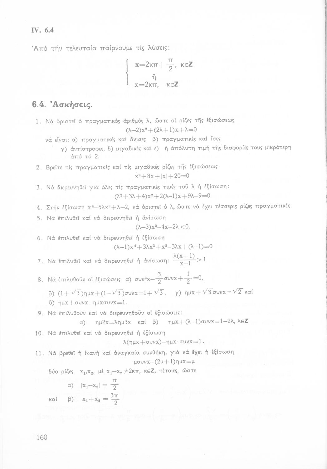 Σχολικό εγχειρίδιο Μαθηματικών Γ΄ Λυκείου που είναι χωρισμένο σε θεωρήματα, παραδείγματα και ασκήσεις και περιλαμβάνει στοιχεία Ανώτερης Άλγεβρας και Μαθηματικής Ανάλυσης.