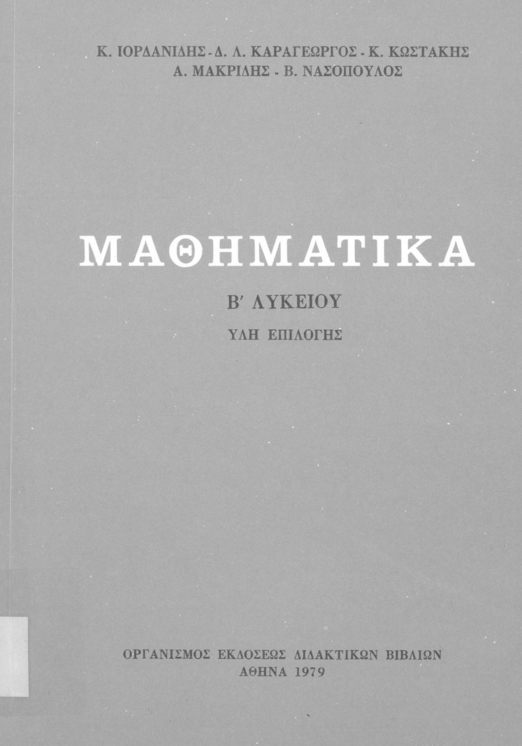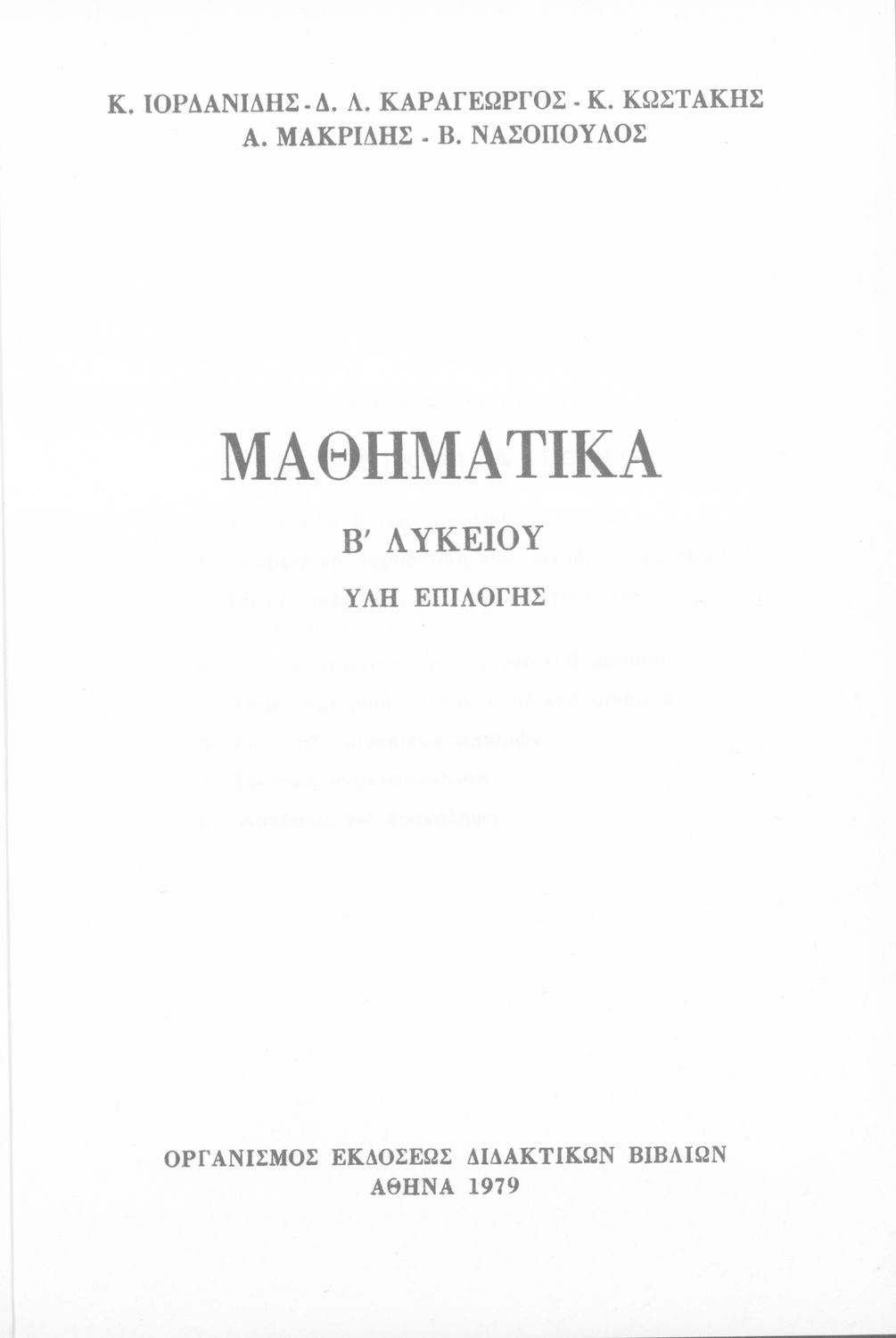 Συγγραφέας: Κ. Ιορδανίδης, Δ. Λ. Καραγεώργος, Κ. Κωστάκης, Α. Μακρίδης, Β. Νασόπουλος