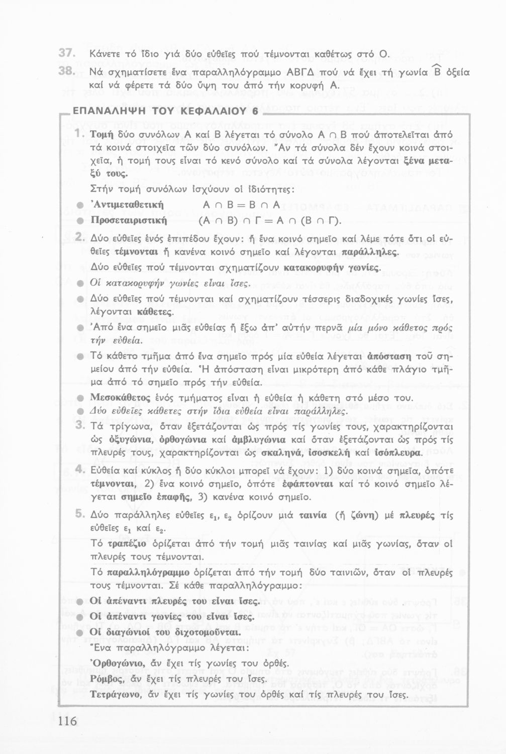 Σχολικό εγχειρίδιο Γεωμετρίας για την Α΄ και Β΄ Γυμνασίου χωρισμένο σε Επιπεδομετρία και Στερεομετρία που περιέχει θεωρία και ασκήσεις.