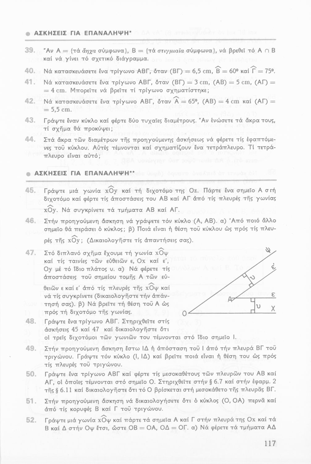 Παρουσίαση περιεχομένου: Σχολικό εγχειρίδιο Μαθηματικών Α΄ Γυμνασίου που συνδυάζει Γεωμετρία και Άλγεβρα.