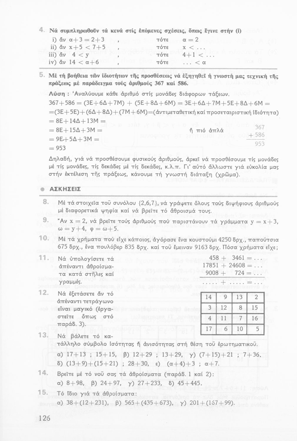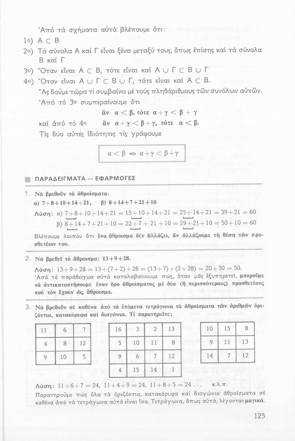 Σχολικό εγχειρίδιο Μαθηματικών Γυμνασίου που είναι χωρισμένο σε θεωρήματα, παραδείγματα και ασκήσεις και περιλαμβάνει στοιχεία Ανώτερης Άλγεβρας και Μαθηματικής Ανάλυσης.