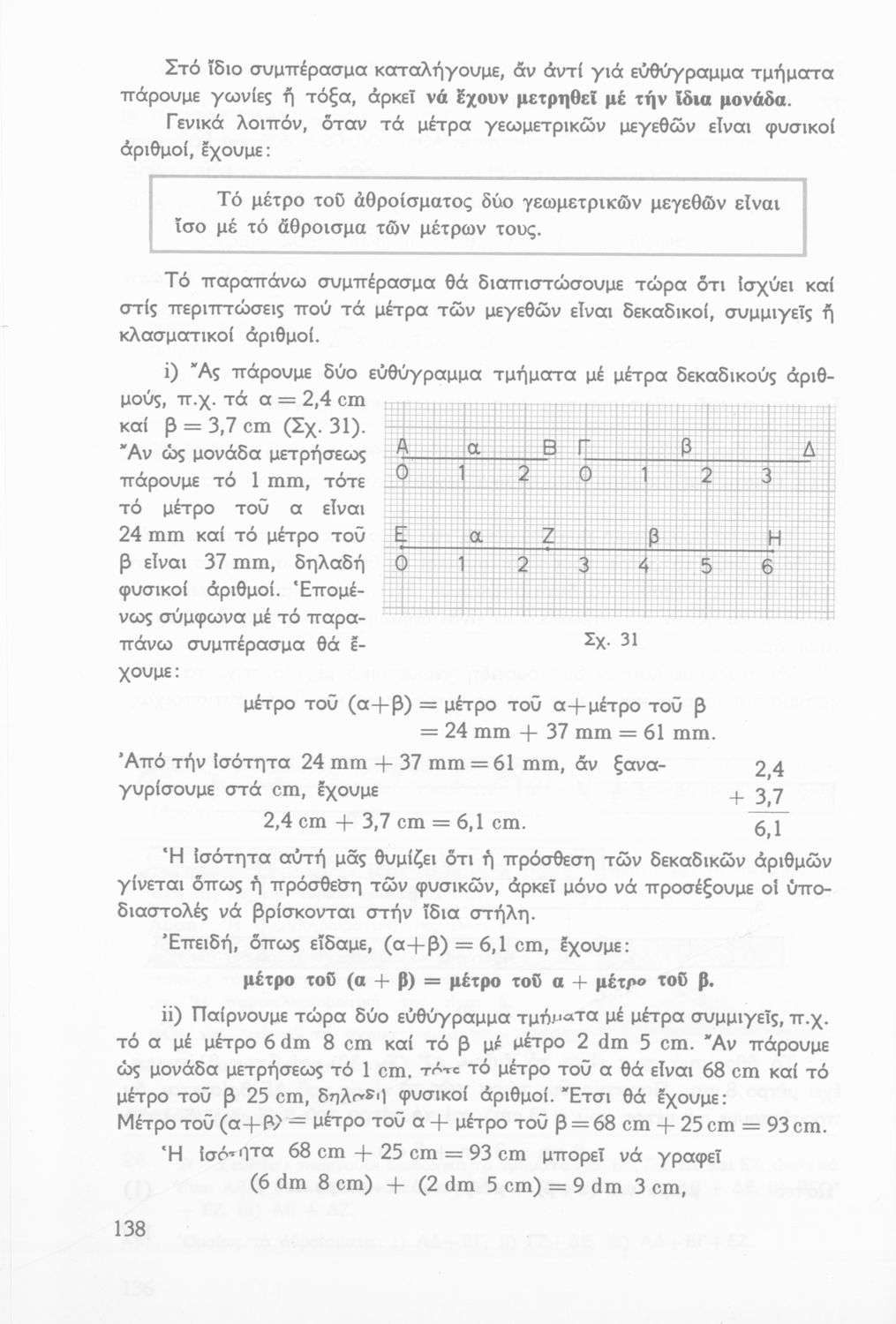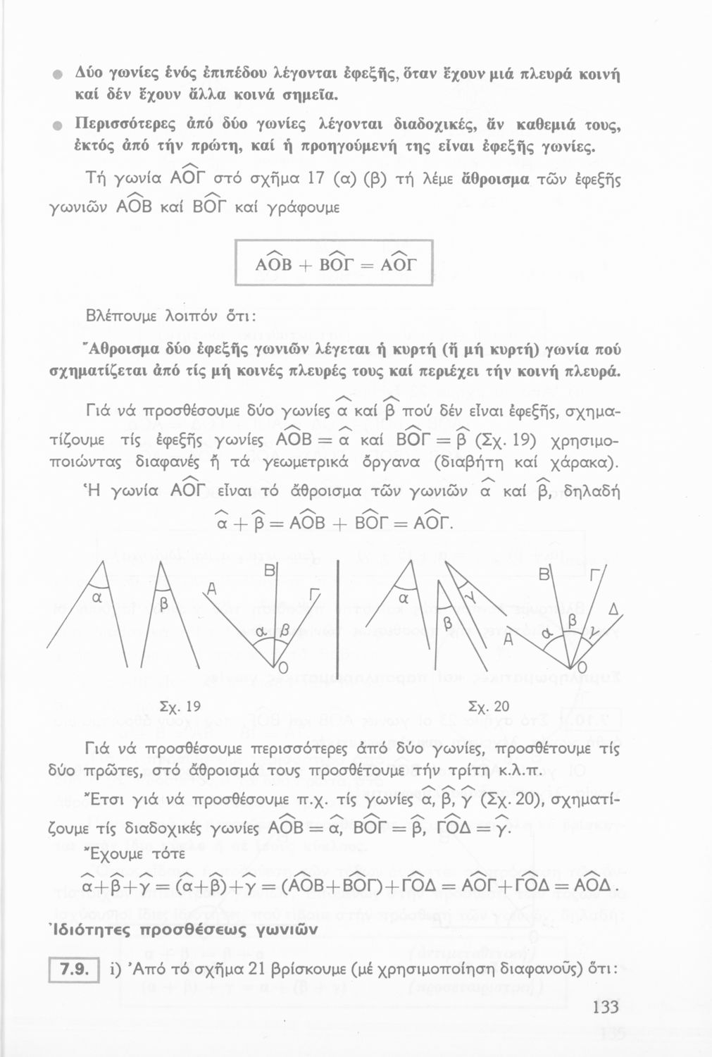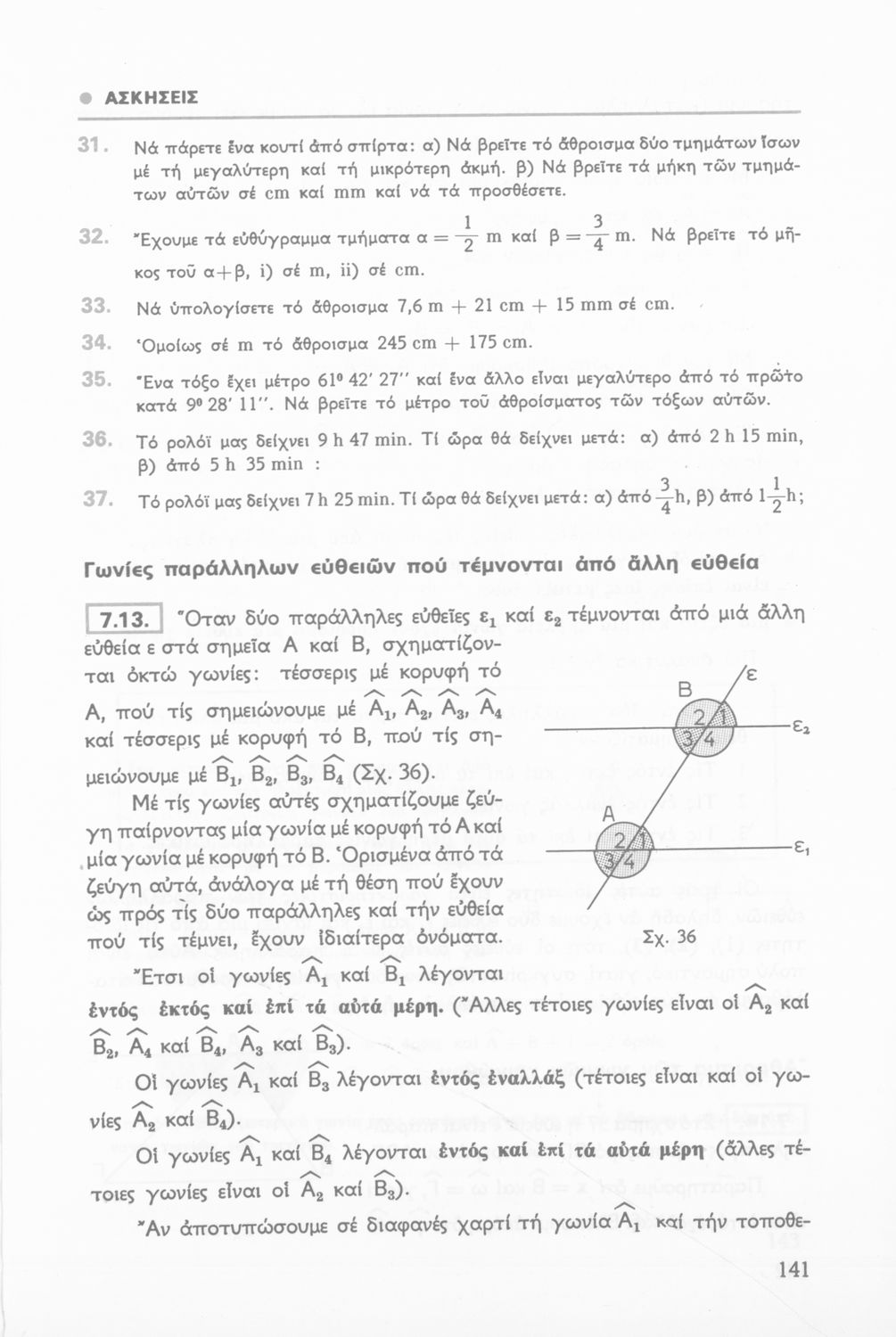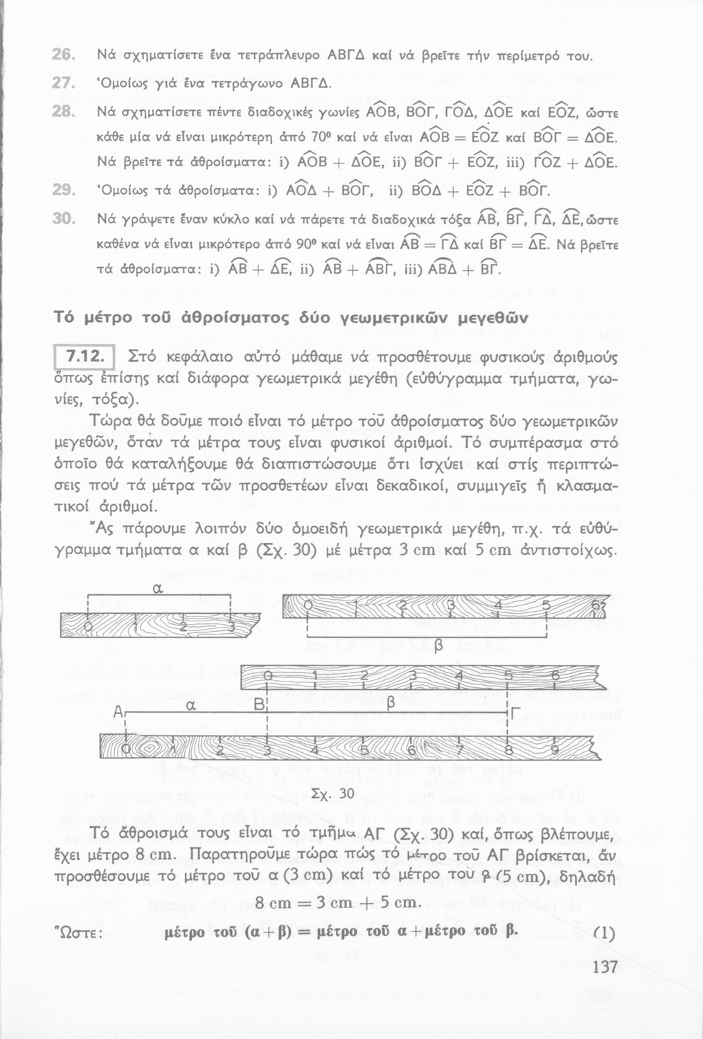 Παρουσίαση περιεχομένου: Σχολικό εγχειρίδιο Μαθηματικών Α΄ Γυμνασίου που συνδυάζει Γεωμετρία και Άλγεβρα.