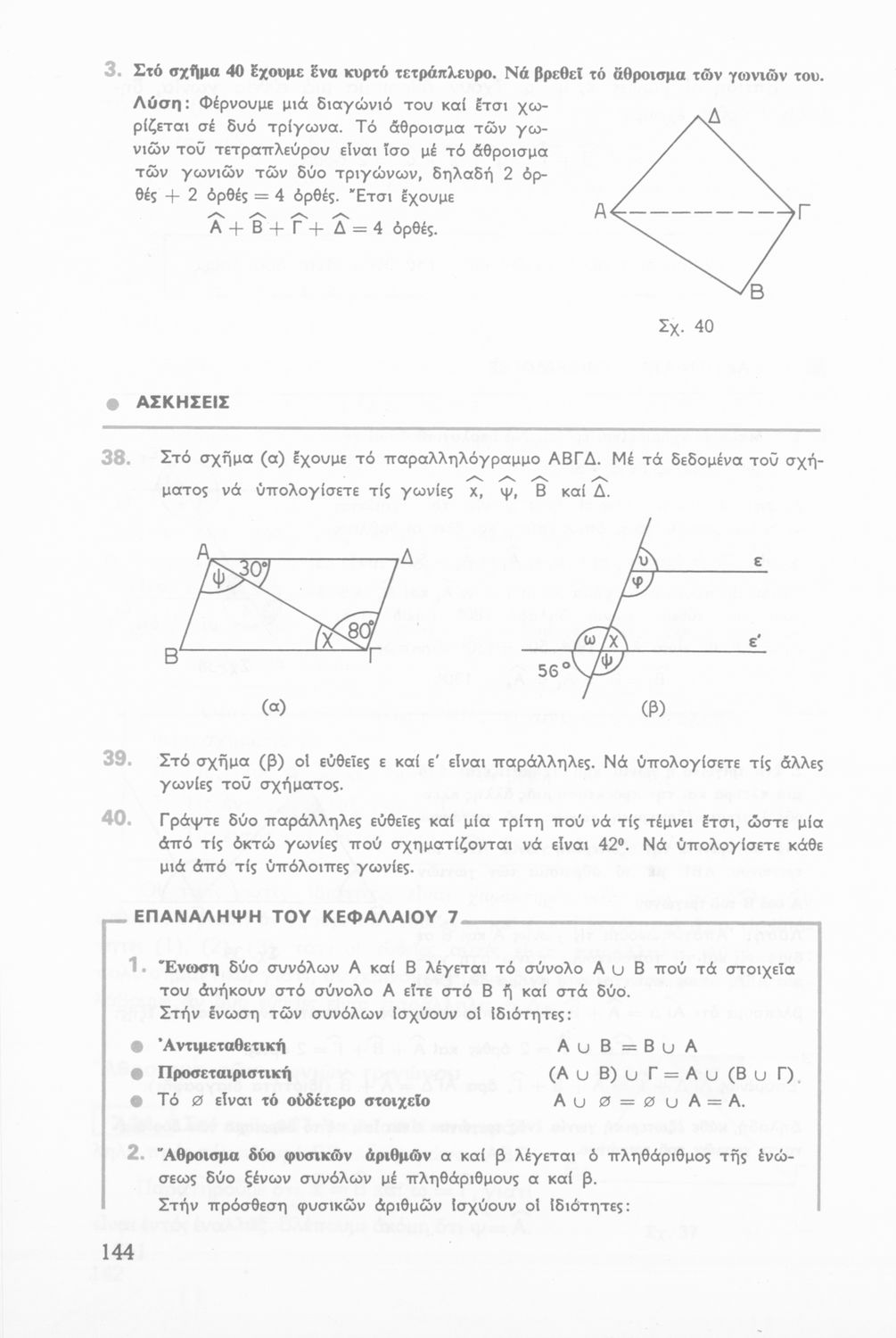 Παρουσίαση περιεχομένου: Σχολικό εγχειρίδιο Μαθηματικών Α΄ Γυμνασίου που συνδυάζει Γεωμετρία και Άλγεβρα.