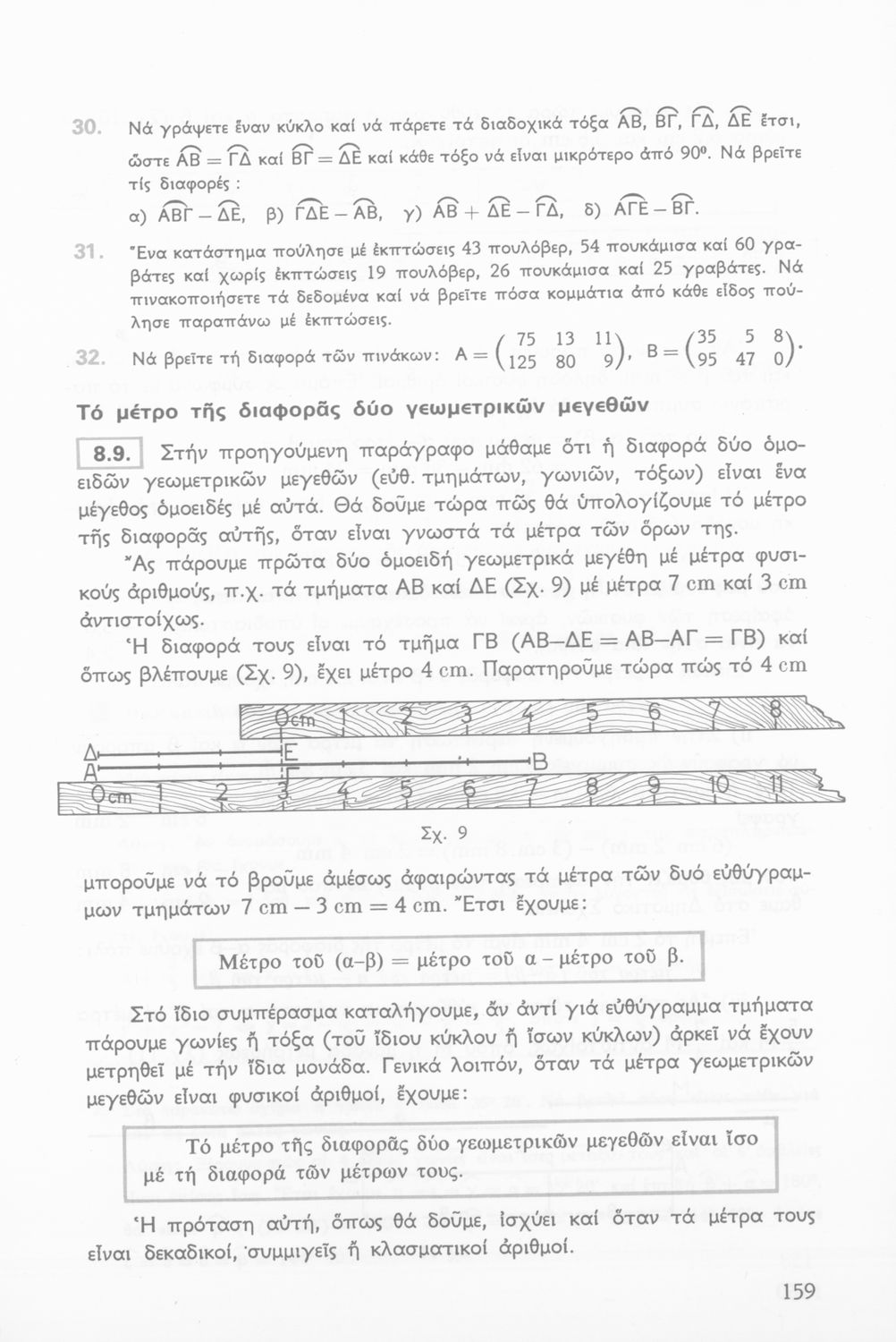 Σχολικό εγχειρίδιο Μαθηματικών Γυμνασίου που είναι χωρισμένο σε θεωρήματα, παραδείγματα και ασκήσεις και περιλαμβάνει στοιχεία Ανώτερης Άλγεβρας και Μαθηματικής Ανάλυσης.