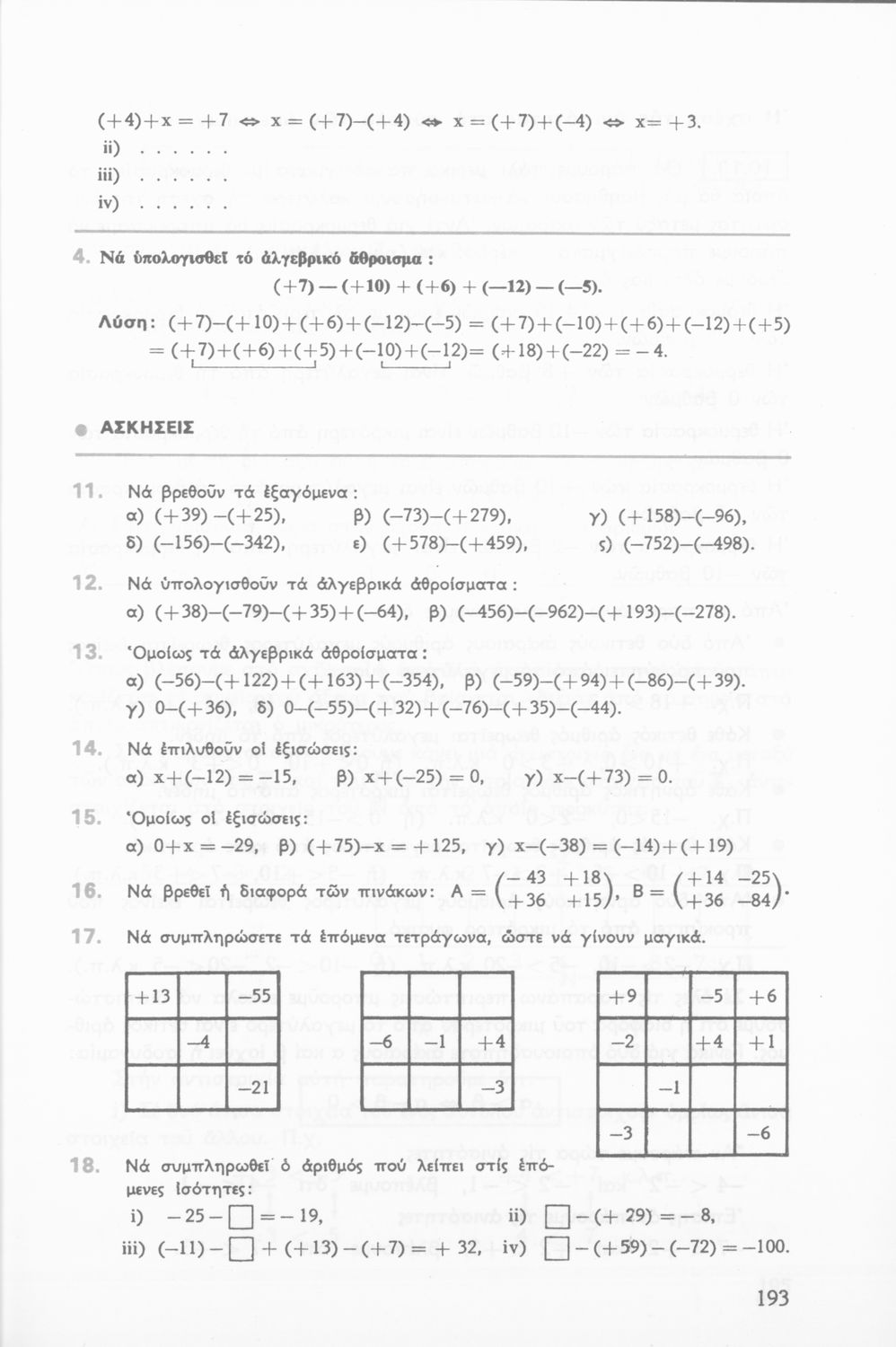 Σχολικό εγχειρίδιο Άλγεβρας Γυμνασίου που περιλαμβάνει θεωρία, ασκήσεις και στοιχεία λογιστικής.
