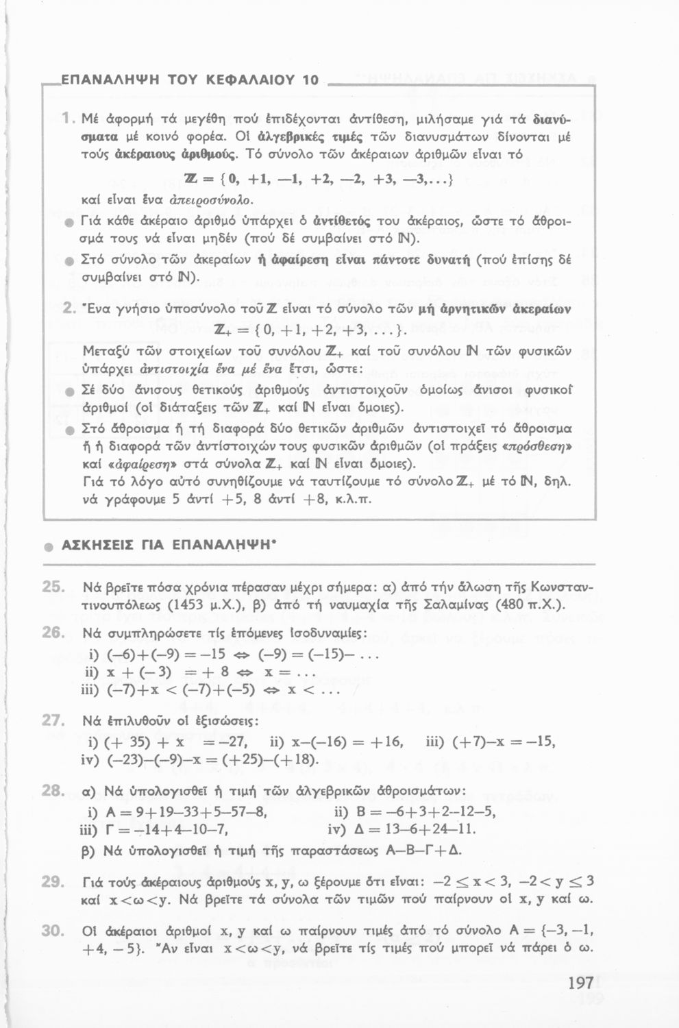 Σχολικό εγχειρίδιο Μαθηματικών Γυμνασίου που είναι χωρισμένο σε θεωρήματα, παραδείγματα και ασκήσεις και περιλαμβάνει στοιχεία Ανώτερης Άλγεβρας και Μαθηματικής Ανάλυσης.