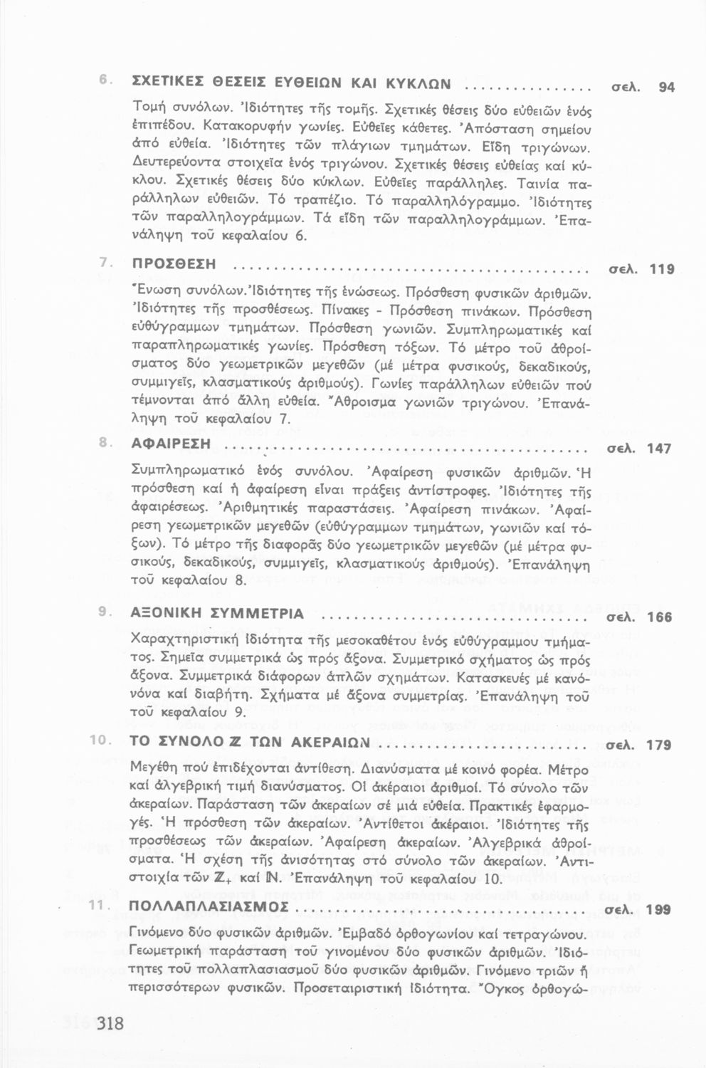 Βαθμίδα εκπαίδευσης: Δευτεροβάθμια Τάξη: Α' Γυμνασίου Μάθημα: Μαθηματικά Γλώσσα: Δημοτική Παρουσίαση περιεχομένου: Σχολικό εγχειρίδιο Μαθηματικών Α΄ Γυμνασίου που συνδυάζει Γεωμετρία και Άλγεβρα. |