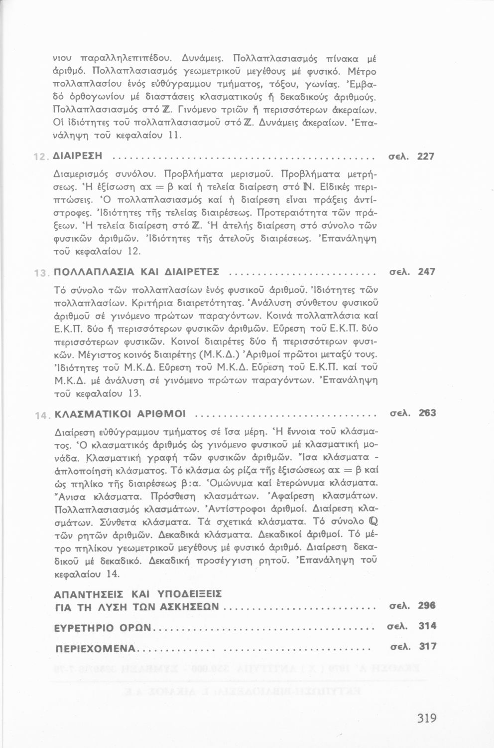 Σχολικό εγχειρίδιο Μαθηματικών Γυμνασίου που είναι χωρισμένο σε θεωρήματα, παραδείγματα και ασκήσεις και περιλαμβάνει στοιχεία Ανώτερης Άλγεβρας και Μαθηματικής Ανάλυσης.