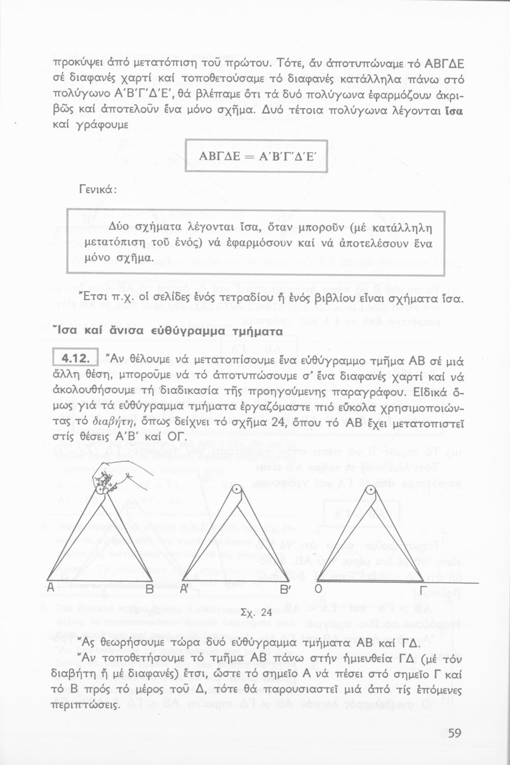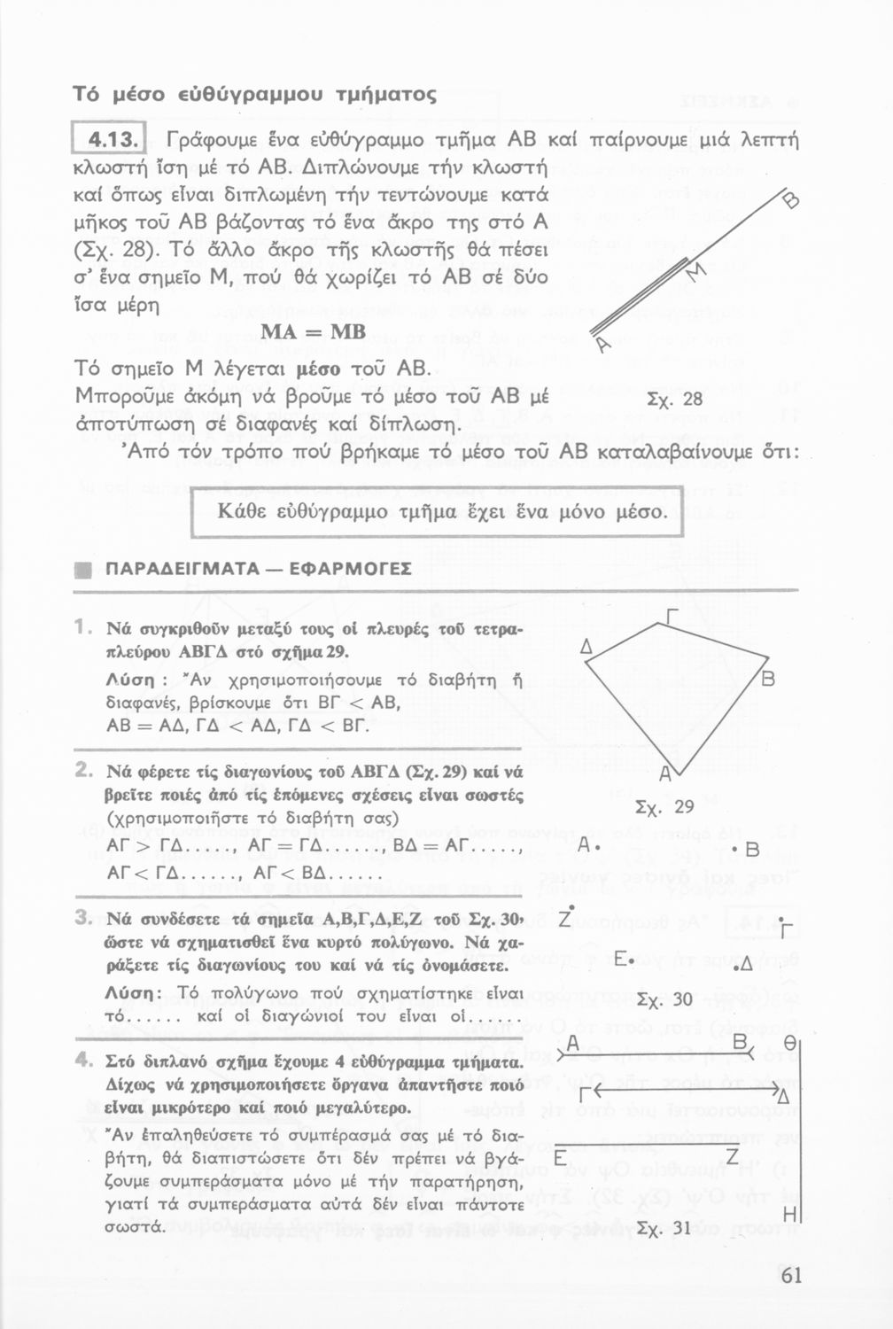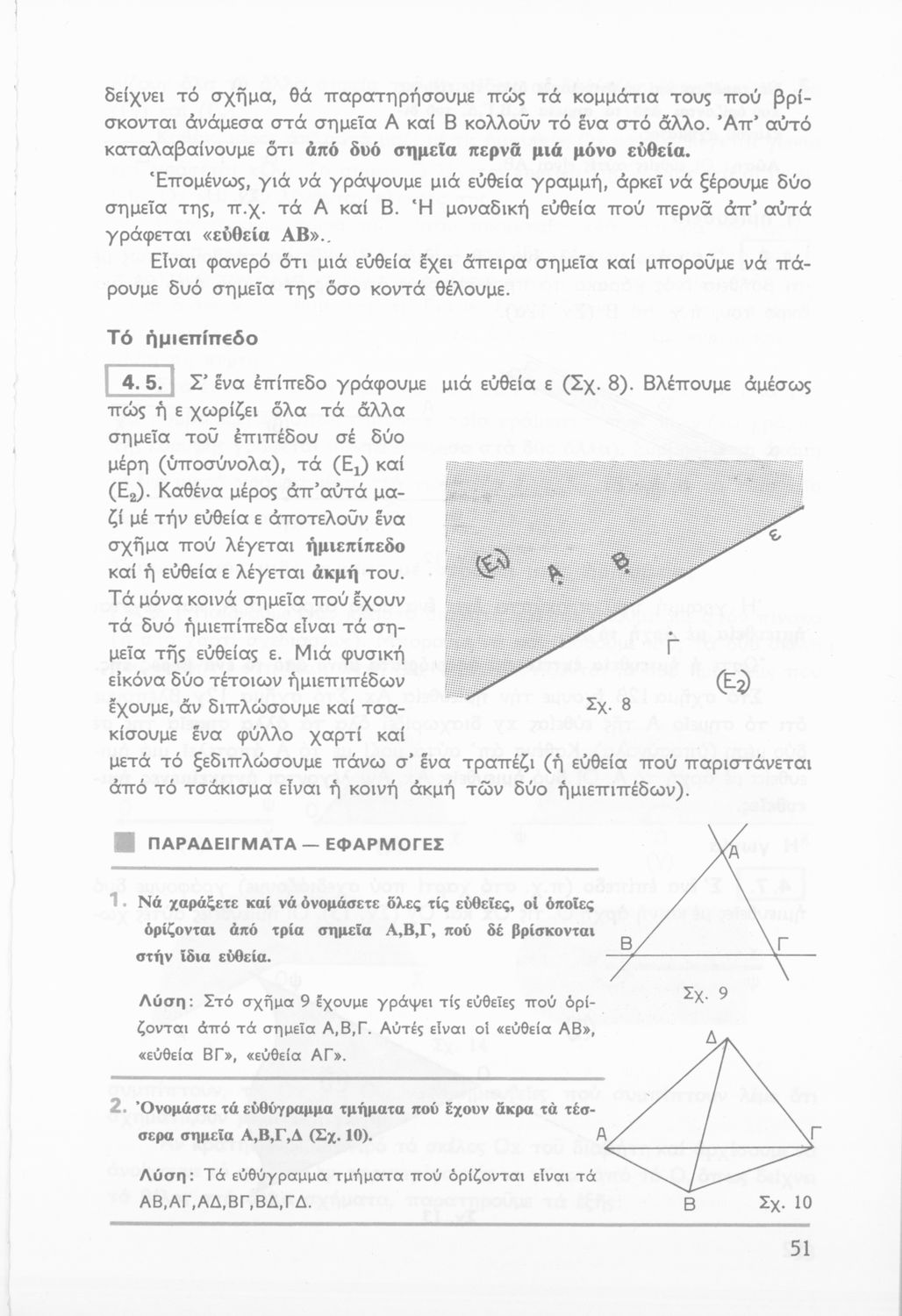 Βαθμίδα εκπαίδευσης: Δευτεροβάθμια Τάξη: Α' Γυμνασίου Μάθημα: Μαθηματικά Γλώσσα: Δημοτική Παρουσίαση περιεχομένου: Σχολικό εγχειρίδιο Μαθηματικών Α΄ Γυμνασίου που συνδυάζει Γεωμετρία και Άλγεβρα. |