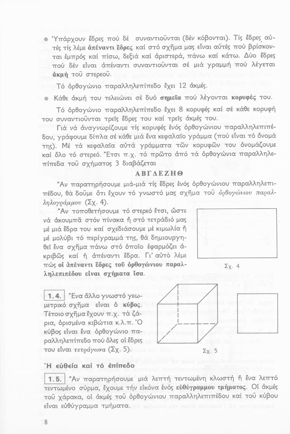 Βαθμίδα εκπαίδευσης: Δευτεροβάθμια Τάξη: Α' Γυμνασίου Μάθημα: Μαθηματικά Γλώσσα: Δημοτική Παρουσίαση περιεχομένου: Σχολικό εγχειρίδιο Μαθηματικών Α΄ Γυμνασίου που συνδυάζει Γεωμετρία και Άλγεβρα. |