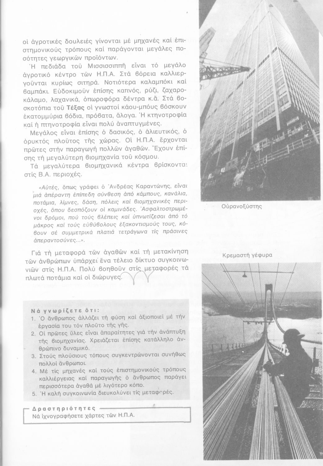 Σχολικό εγχειρίδιο Γεωγραφίας ΣΤ΄ Δημοτικού που περιλαμβάνει εισαγωγή στη φυσική, μαθηματική και πολιτική γεωγραφία και εξετάζει την Ελλάδα και ενδεικτικές χώρες και περιοχές από τις πέντε ηπείρους, εκτός της Ευρώπης, από γεωφυσική και πολιτική άποψη. Περιέχει και στοιχεία ανθρωπογεωγραφίας.