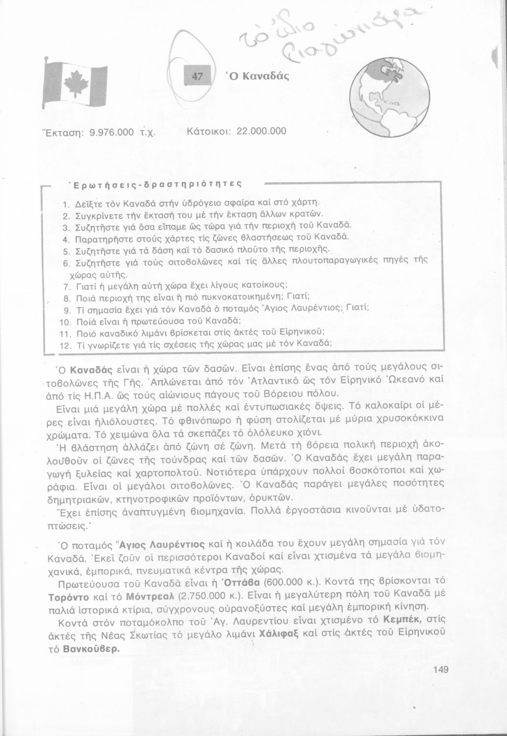 Σχολικό εγχειρίδιο Γεωγραφίας ΣΤ΄ Δημοτικού που περιλαμβάνει εισαγωγή στη φυσική, μαθηματική και πολιτική γεωγραφία και εξετάζει την Ελλάδα και ενδεικτικές χώρες και περιοχές από τις πέντε ηπείρους, εκτός της ...