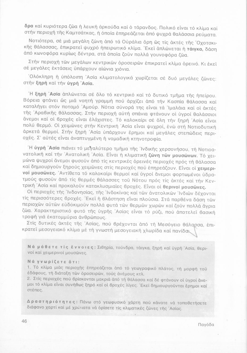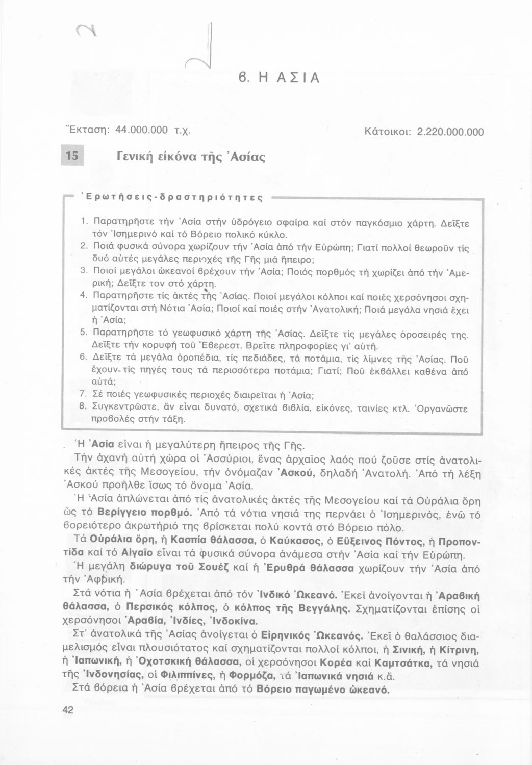 Σχολικό εγχειρίδιο Γεωγραφίας ΣΤ΄ Δημοτικού που περιλαμβάνει εισαγωγή στη φυσική, μαθηματική και πολιτική γεωγραφία και εξετάζει την Ελλάδα και ενδεικτικές χώρες και περιοχές από τις πέντε ηπείρους, εκτός της ...