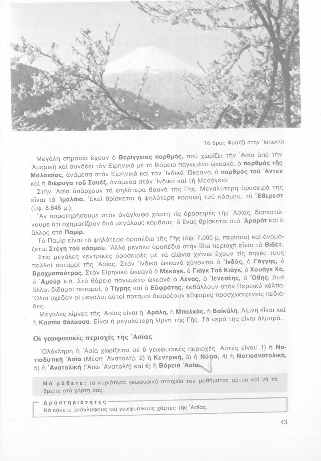 Σχολικό εγχειρίδιο Γεωγραφίας ΣΤ΄ Δημοτικού που περιλαμβάνει εισαγωγή στη φυσική, μαθηματική και πολιτική γεωγραφία και εξετάζει την Ελλάδα και ενδεικτικές χώρες και περιοχές από τις πέντε ηπείρους, εκτός της Ευρώπης, από γεωφυσική και πολιτική άποψη. Περιέχει και στοιχεία ανθρωπογεωγραφίας.
