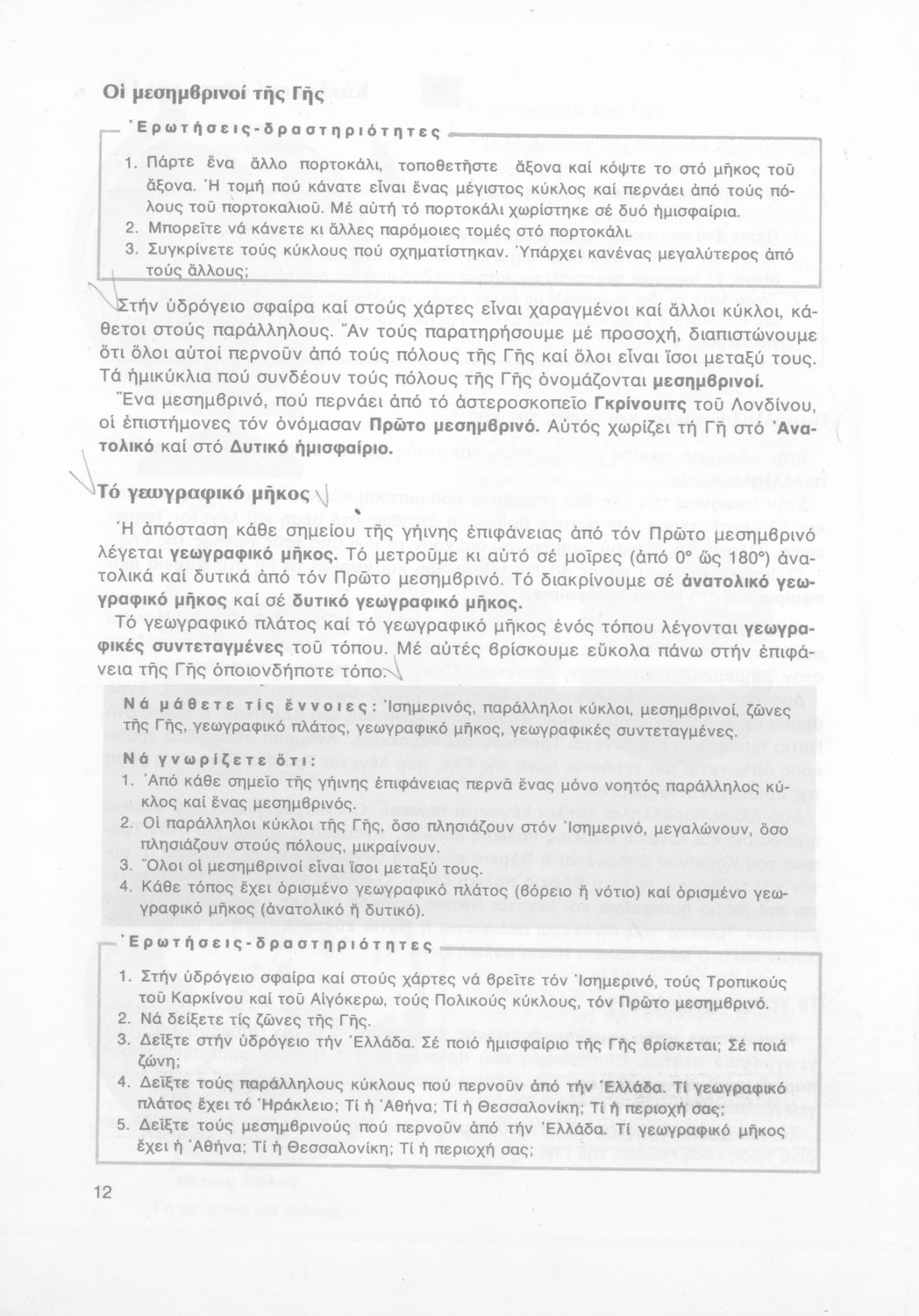 Σχολικό εγχειρίδιο Γεωγραφίας ΣΤ΄ Δημοτικού που περιλαμβάνει εισαγωγή στη φυσική, μαθηματική και πολιτική γεωγραφία και εξετάζει την Ελλάδα και ενδεικτικές χώρες και περιοχές από τις πέντε ηπείρους, εκτός της ...