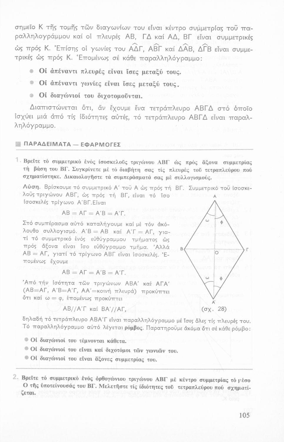 Σχολικό εγχειρίδιο Μαθηματικών Β΄ Λυκείου χωρισμένο σε θεωρία, παρατηρήσεις, παραδείγματα και ασκήσεις.