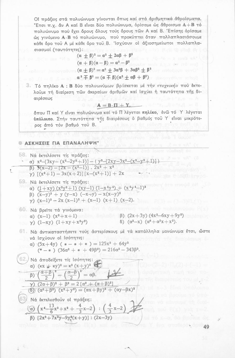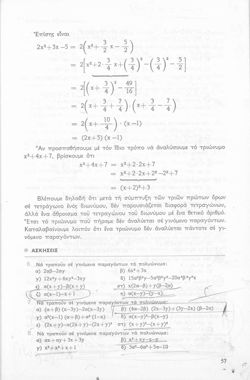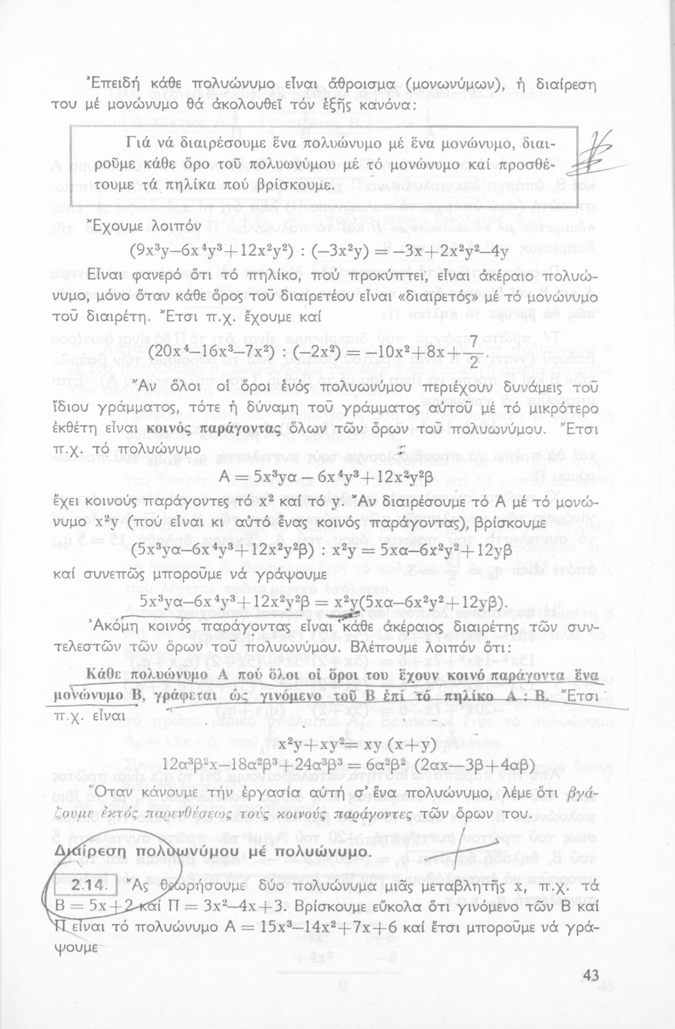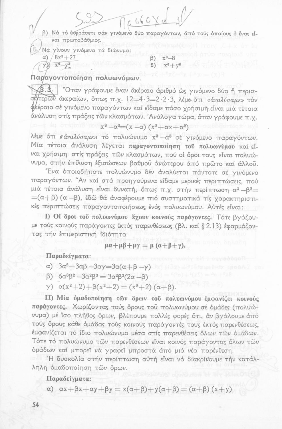 Σχολικό εγχειρίδιο μαθηματικών Γ΄ Γυμνασίου που περιλαμβάνει θεωρία, παραδείγματα και ασκήσεις. Φέρει το σύμβολο της δικτατορίας.