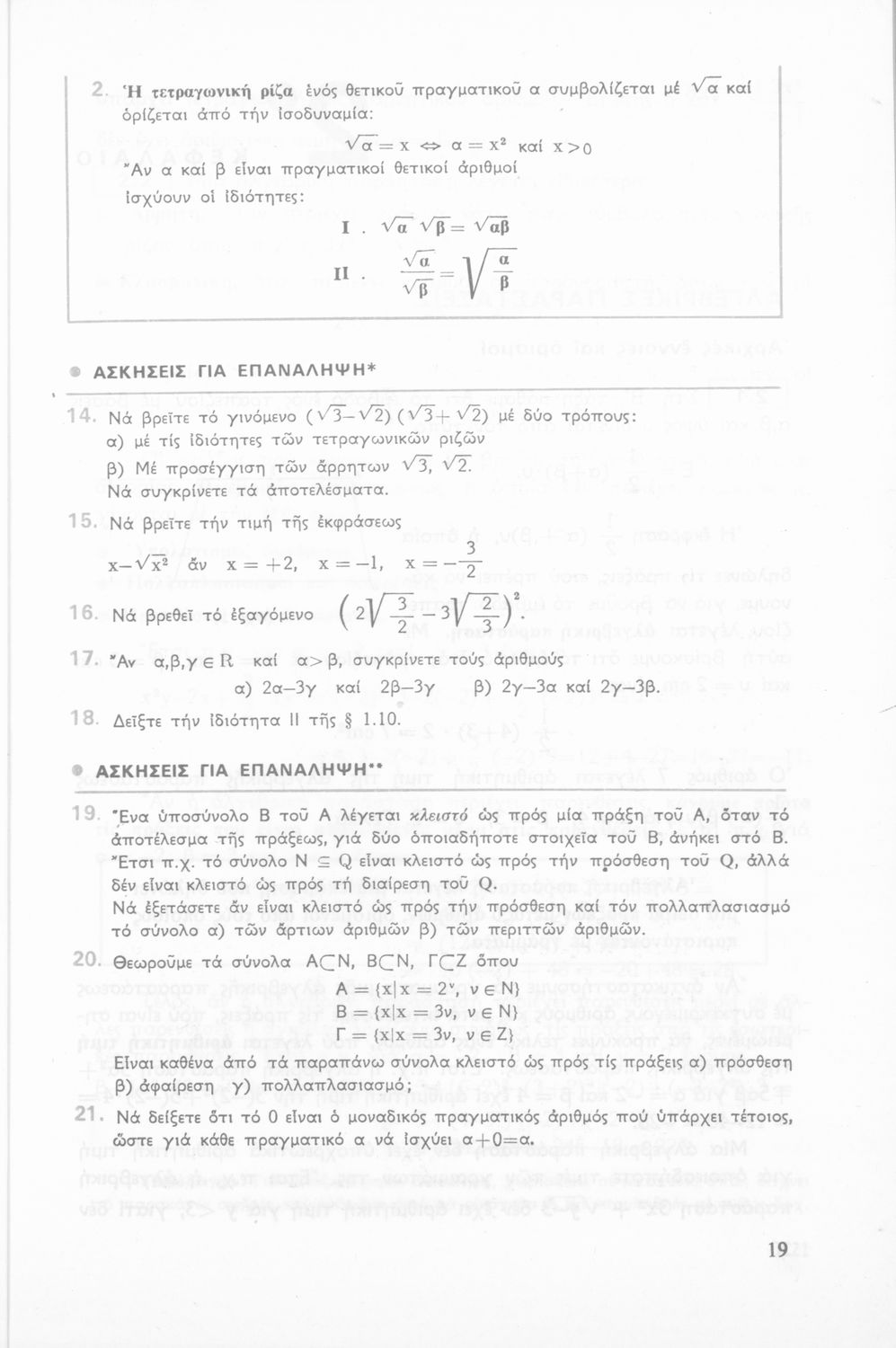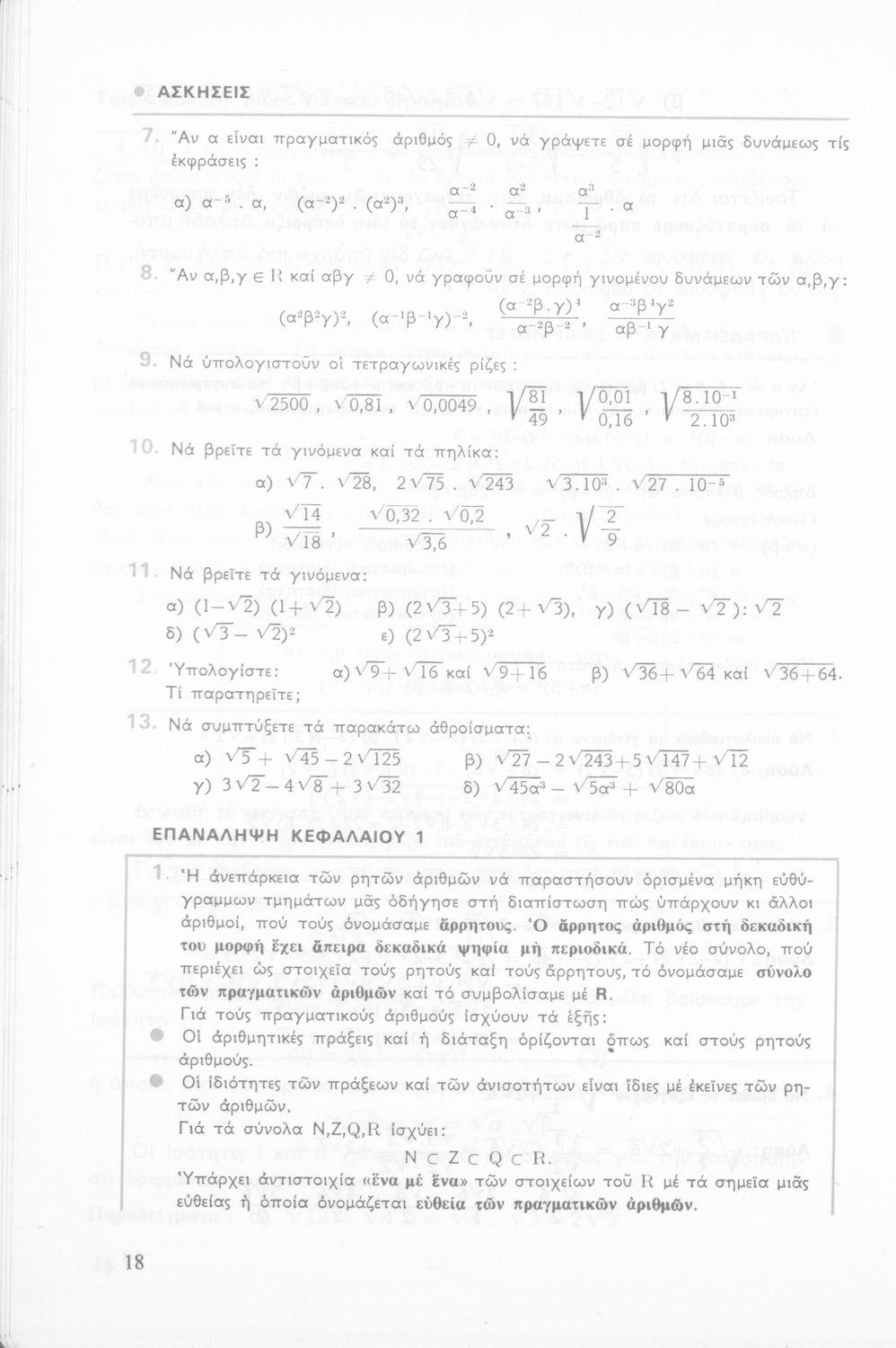 Μαθηματικά Γ΄ Γυμνασίου, τεύχος Α΄