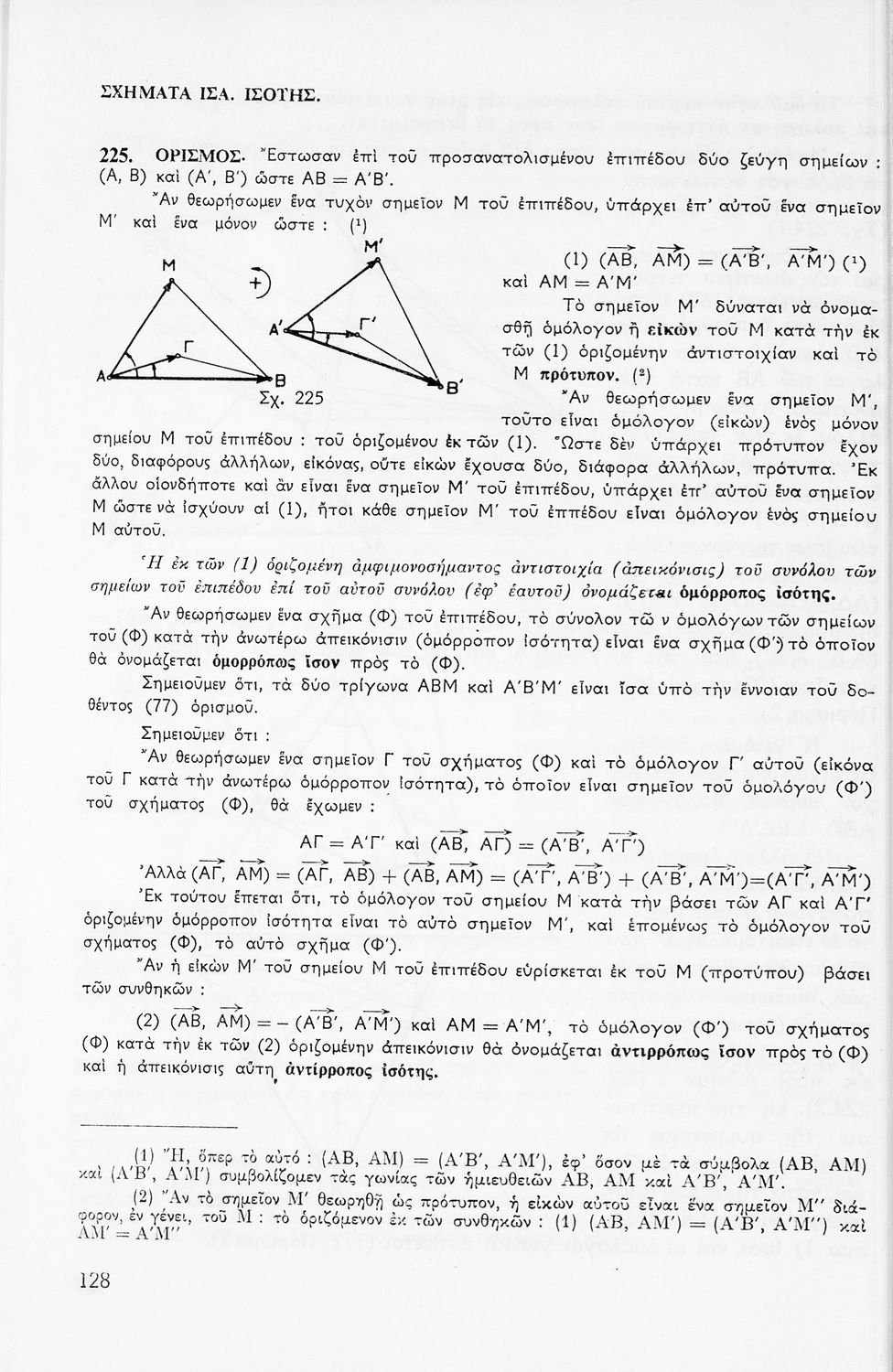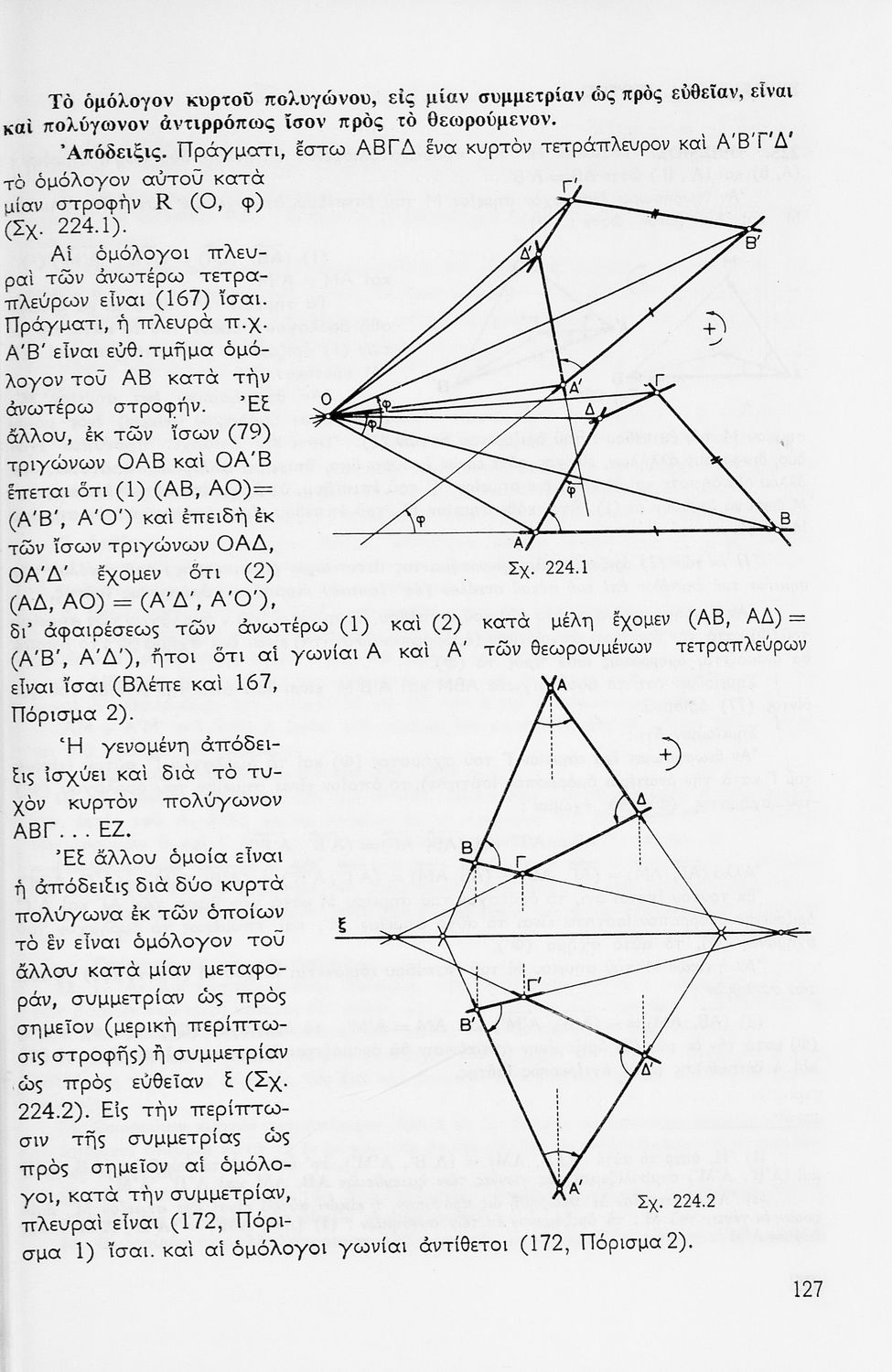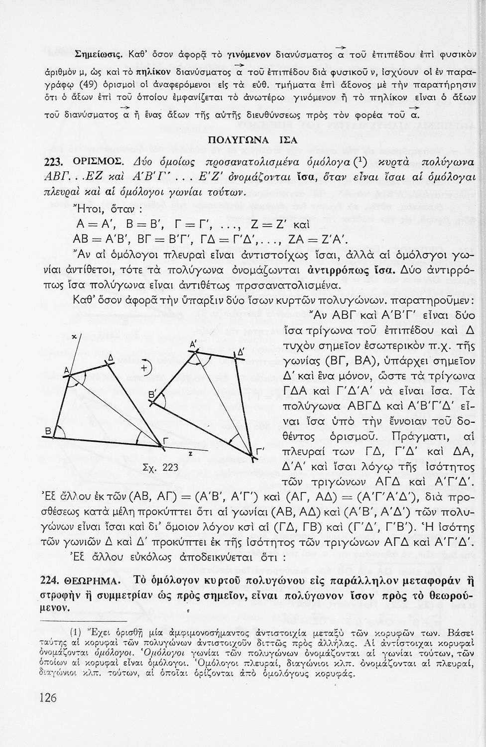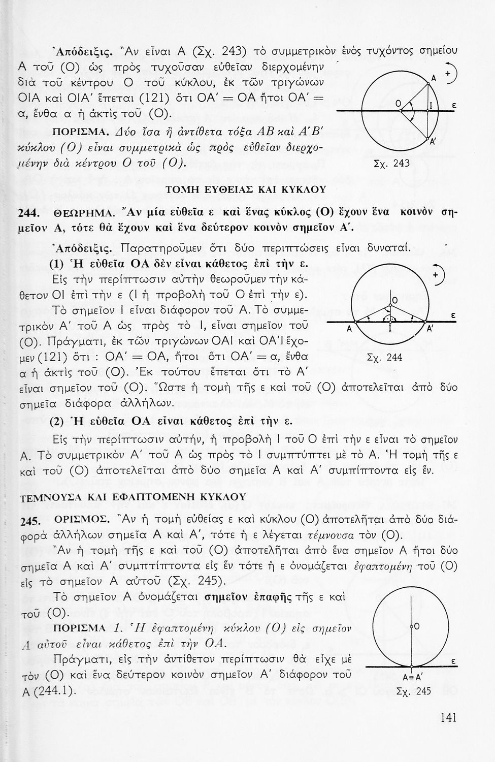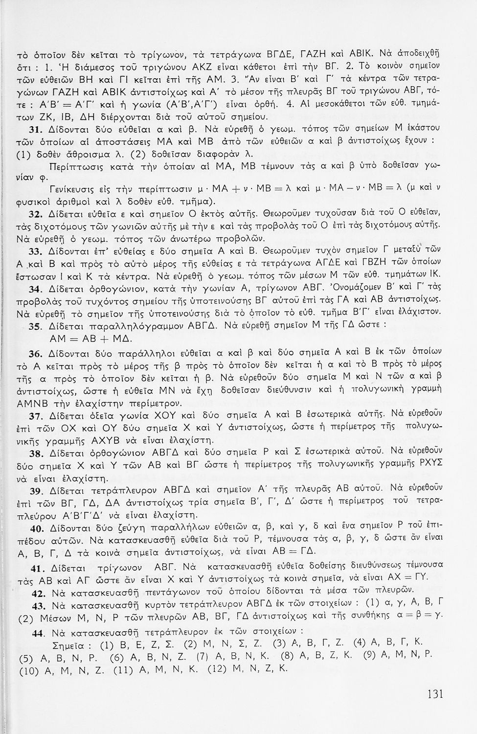 Σχολικό εγχειρίδιο Μαθηματικών Γ΄ Γυμνασίου που εστιάζει στη Γεωμετρία. Φέρει το σύμβολο της δικτατορίας. Ο συγγραφέας ήταν επιμελητής στο ΕΜΠ.
