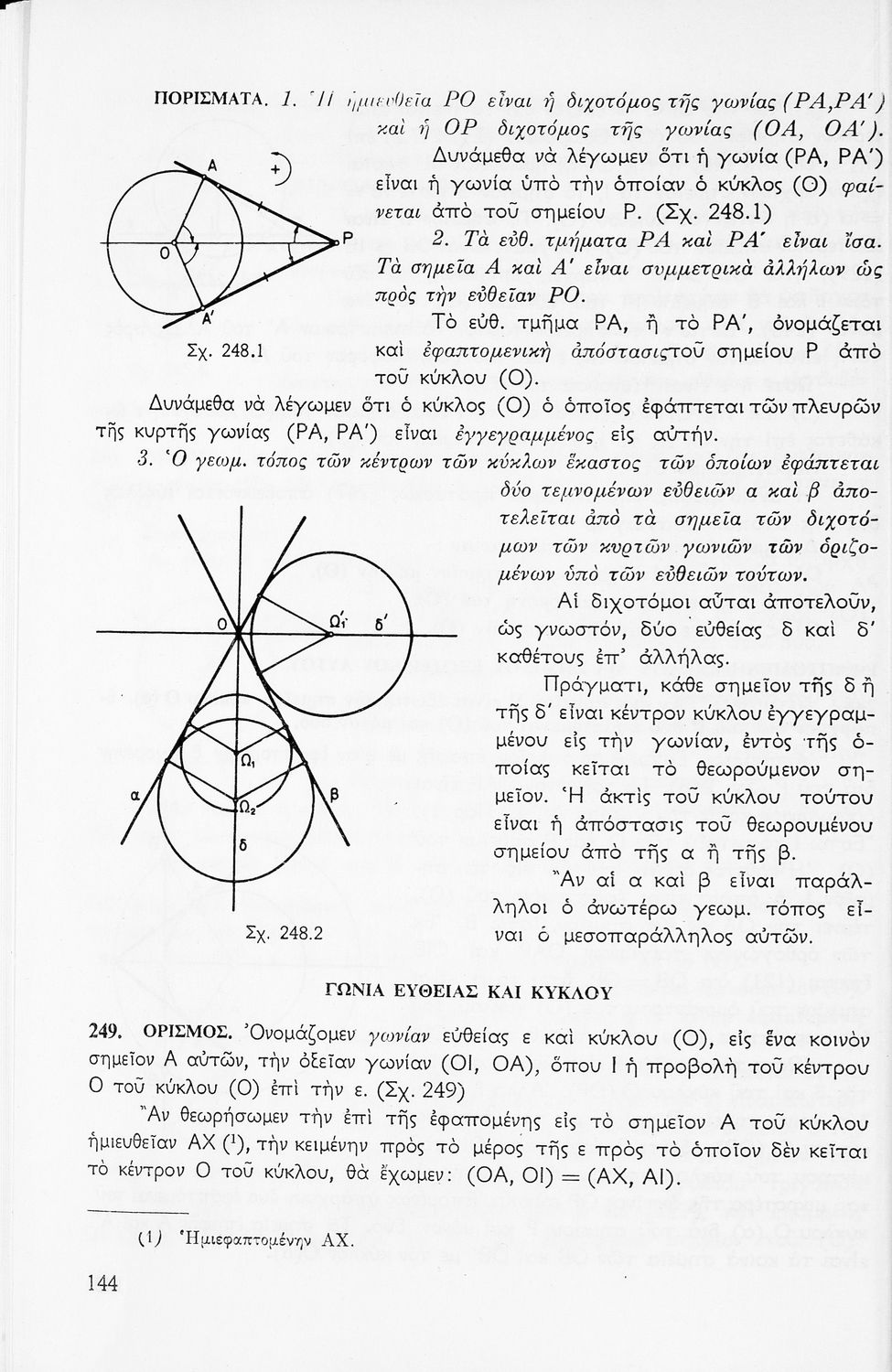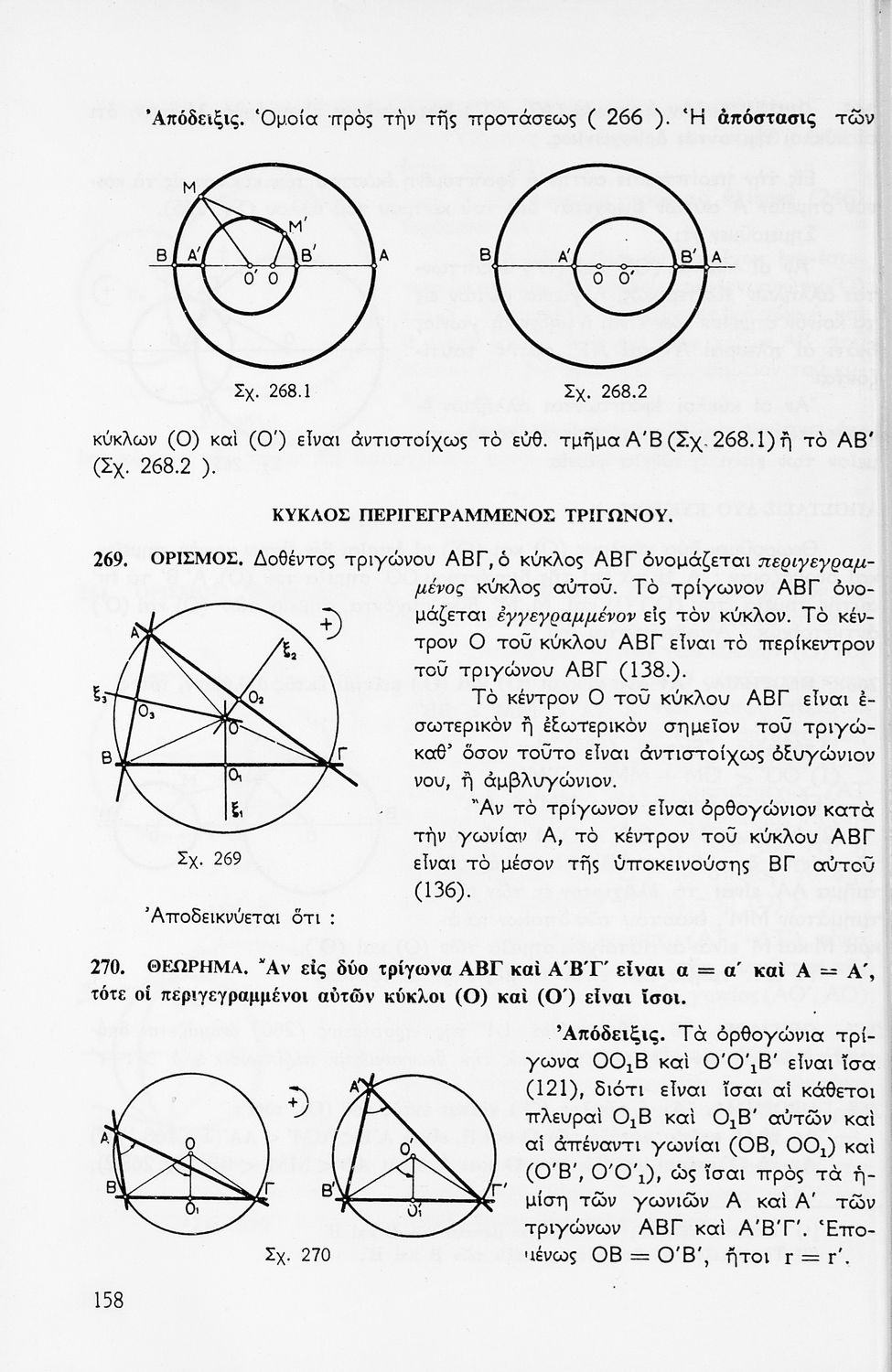 Βαθμίδα εκπαίδευσης: Δευτεροβάθμια Τάξη: Γ' Γυμνασίου Μάθημα: Μαθηματικά Γλώσσα: Απλή καθαρεύουσα Παρουσίαση περιεχομένου: Σχολικό εγχειρίδιο Μαθηματικών Γ΄ Γυμνασίου που εστιάζει στη Γεωμετρία. Φέρει το σύμβολο της δικτατορίας. Ο συγγραφέας ήταν επιμελητής στο ΕΜΠ. |