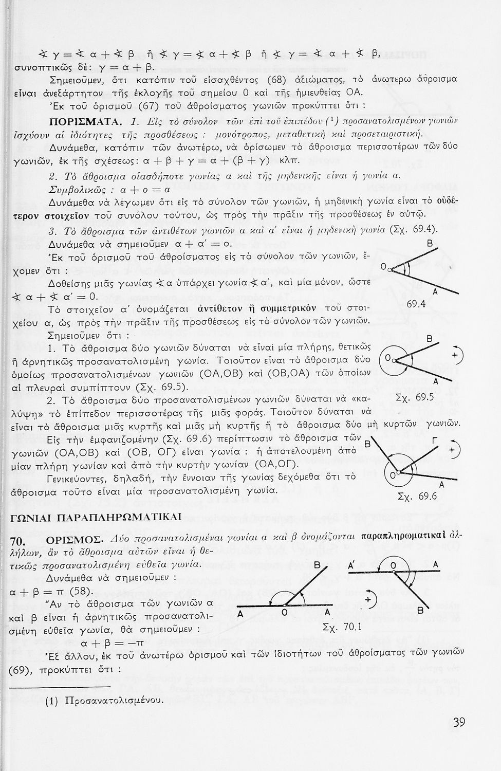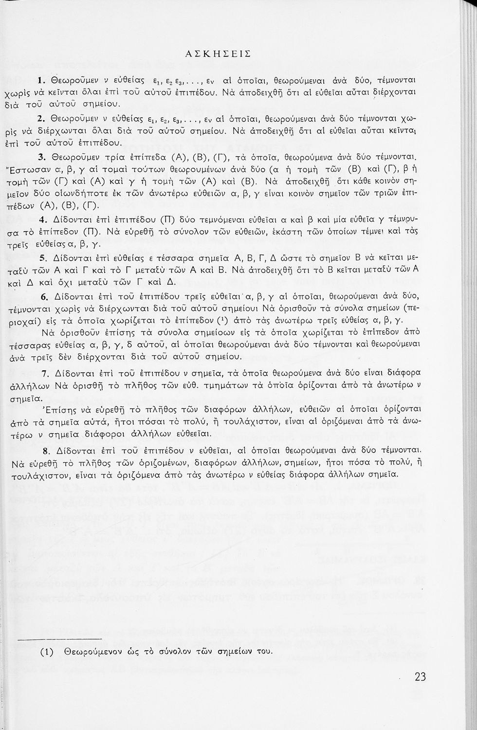 Σχολικό εγχειρίδιο Μαθηματικών Γ΄ Γυμνασίου που εστιάζει στη Γεωμετρία. Φέρει το σύμβολο της δικτατορίας. Ο συγγραφέας ήταν επιμελητής στο ΕΜΠ.